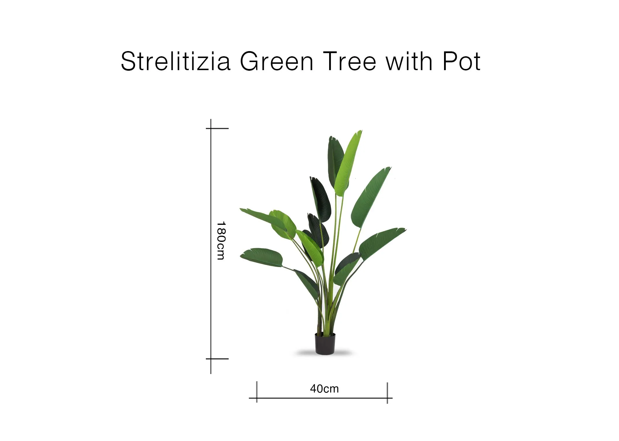 Experience tropical foliage with this 180 cm Strelitzia Green Tree. Authentic, low maintenance, and comes with a pot.
