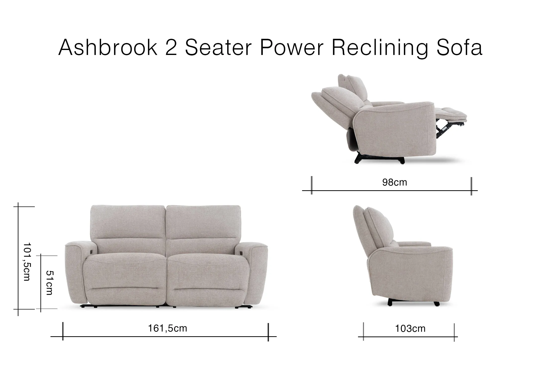 2 Seater Beige Fabric Power Recliner Sofa - Ashbrook