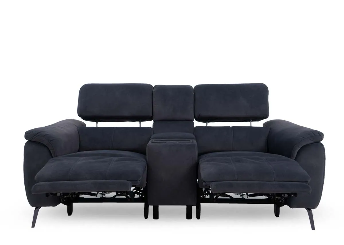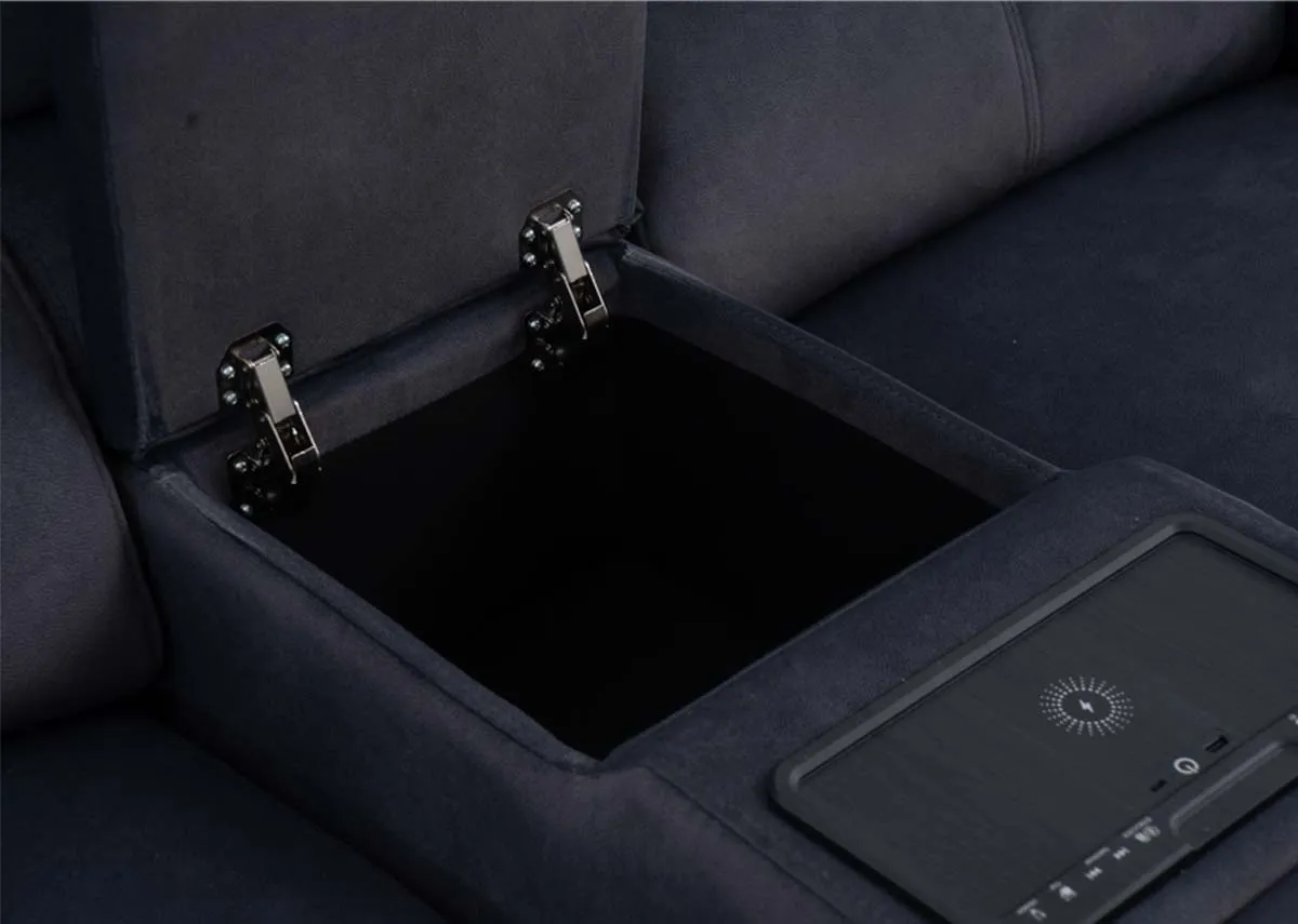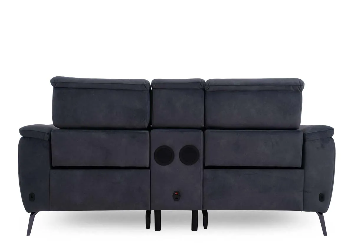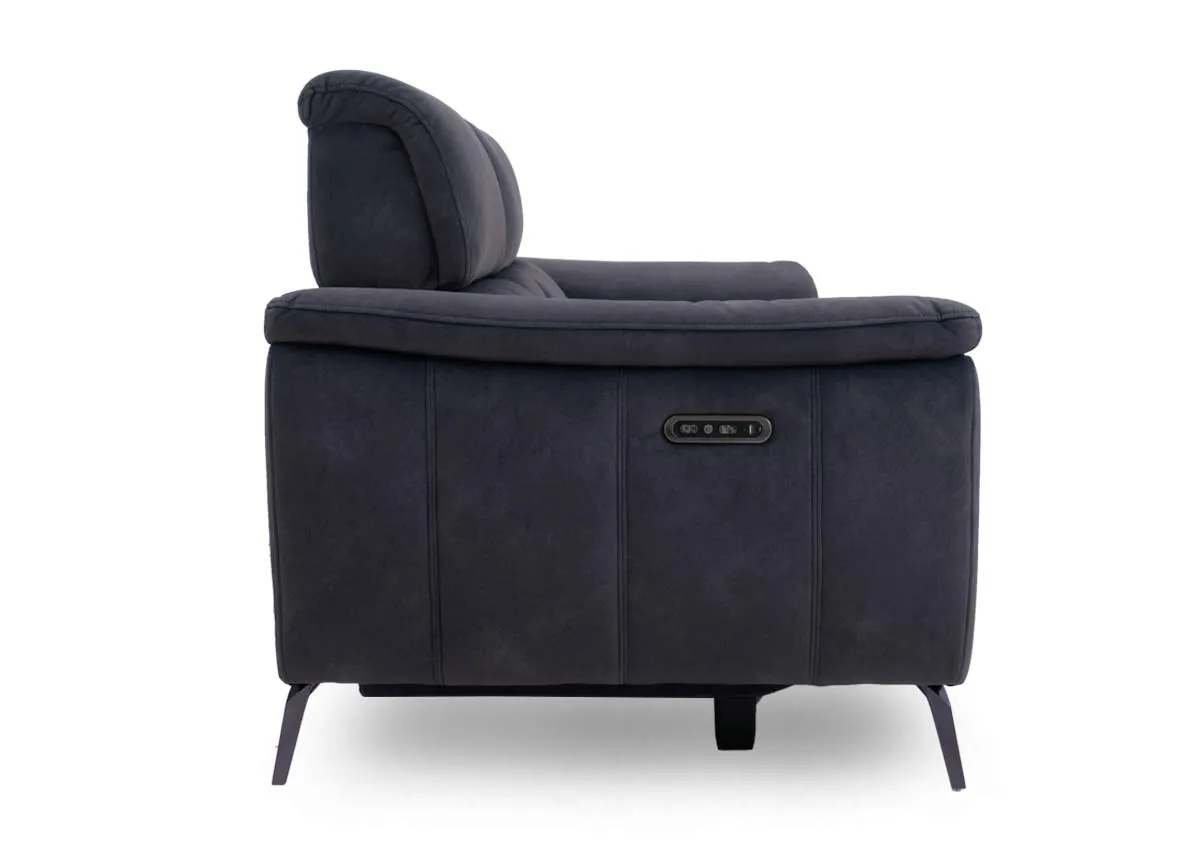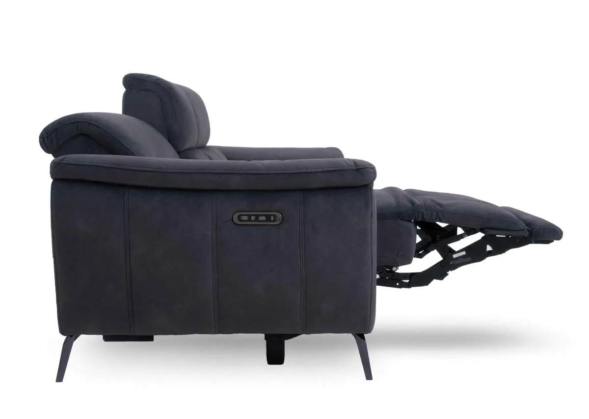 2 Seater Grey Fabric Power Reclining Sofa (Bluetooth speaker) - Madison