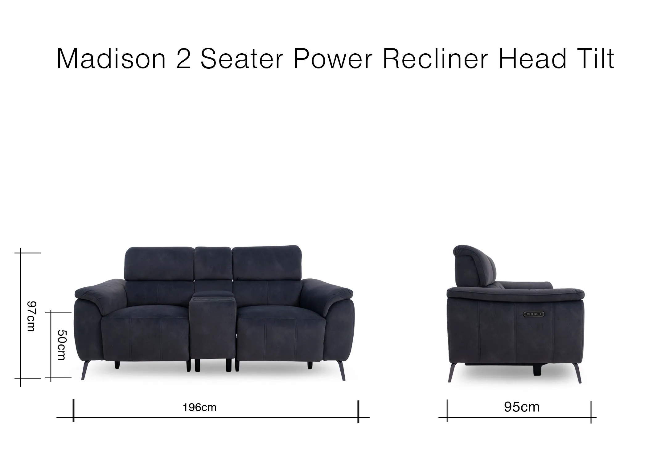 Indulge in unparalleled relaxation and smart entertainment with the Madison 2 Seater Power Recliner, boasting power recline, head tilt, and built-in Bluetooth speakers.