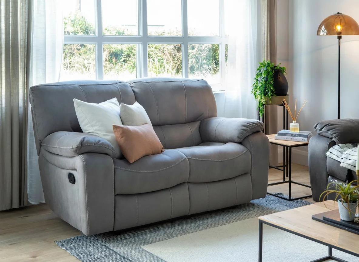 2 Seater Grey Suede Fabric Reclining Sofa - Bradford
