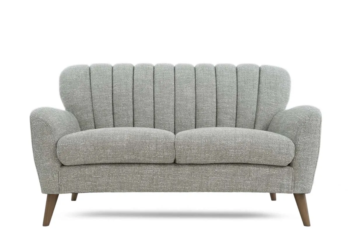 Upholstered in a light sage green beige fabric and featuring elegant channel tufting on its backrest, the Harper 2 Seater sofa invites you to unwind in style