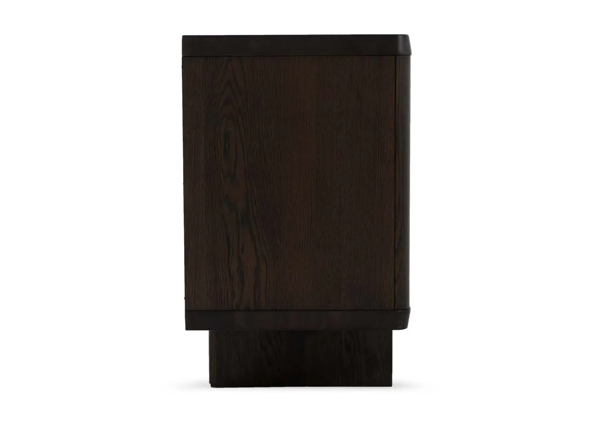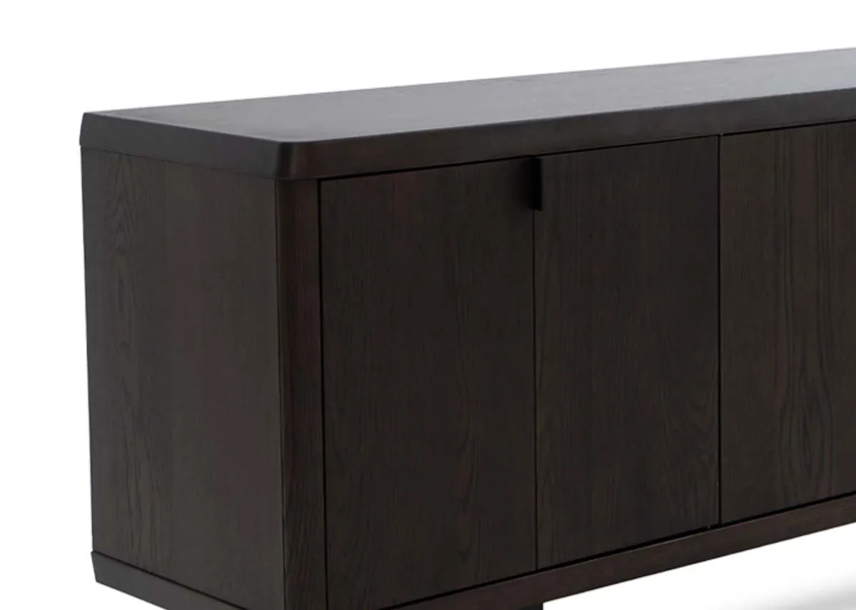 Striking and sleek in an espresso oak veneer finish, the Natu sideboard has 3 doors and ample storage.