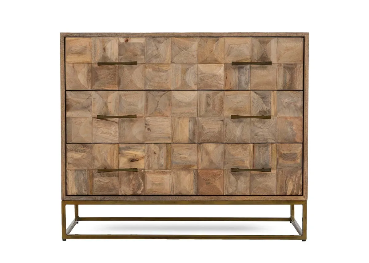Stunning in mango wood the Diva 3 drawer chest boasts a mosaic design which will add texture to your chosen space.