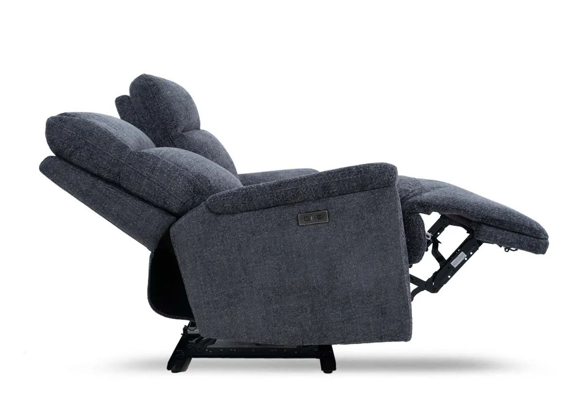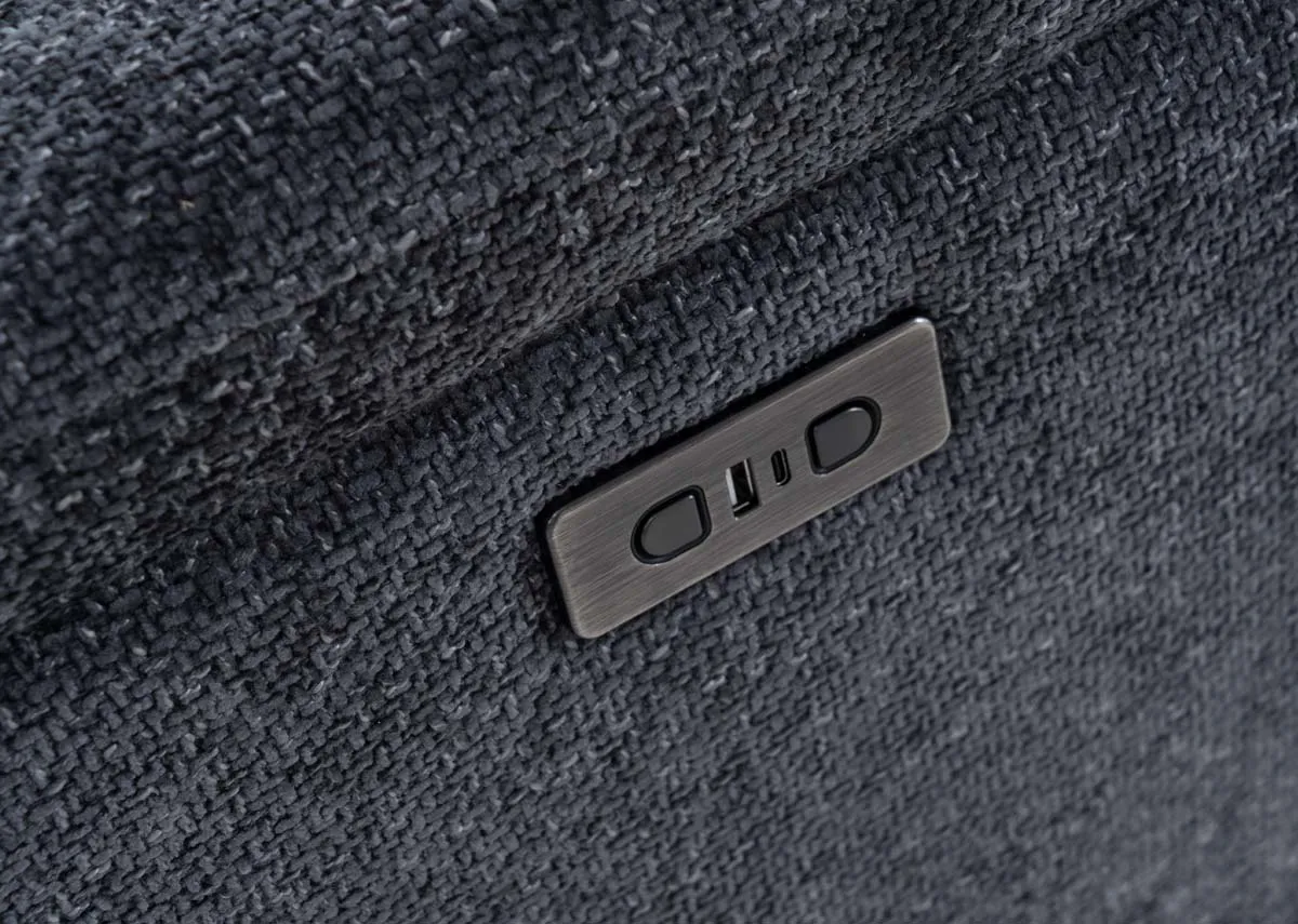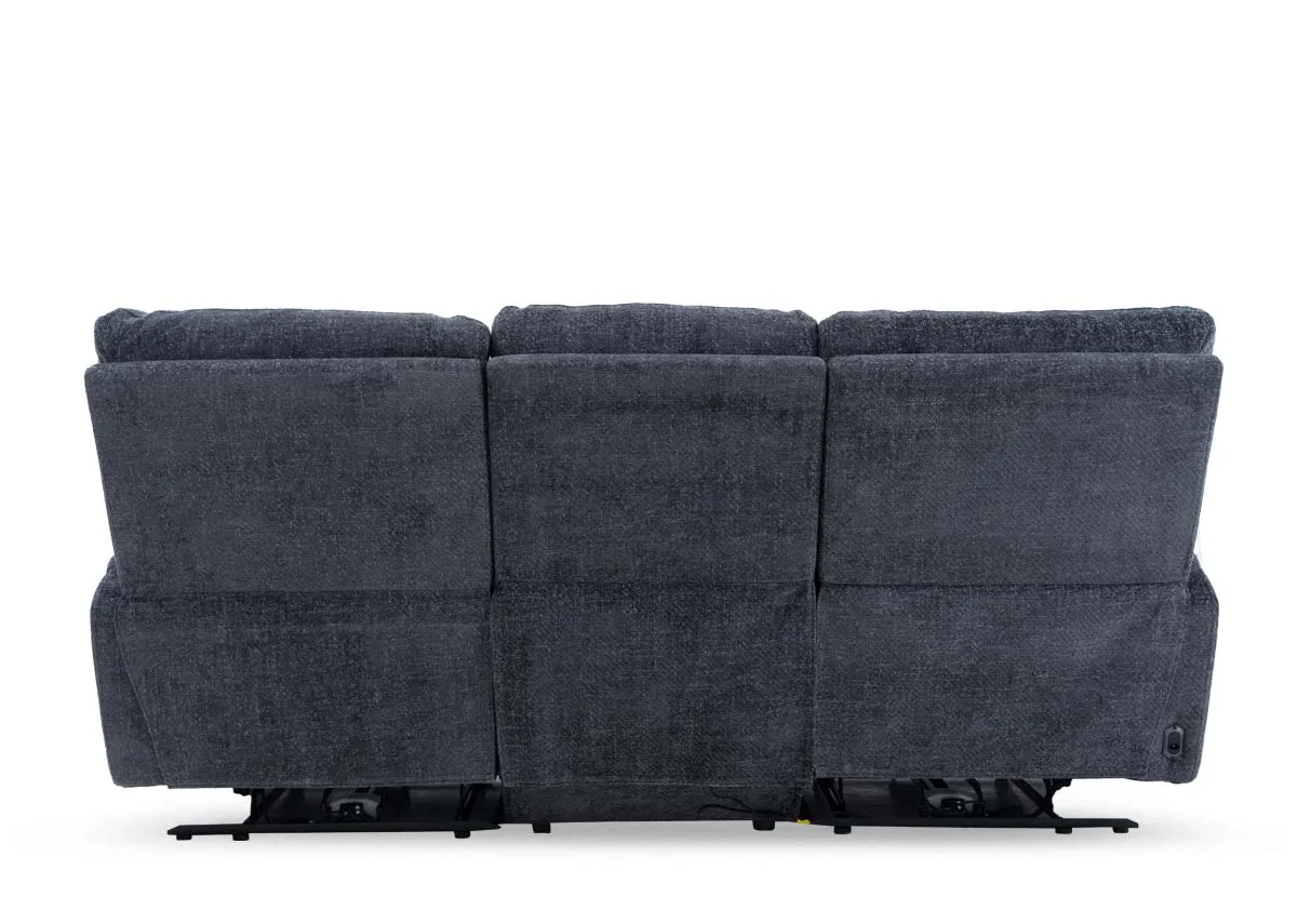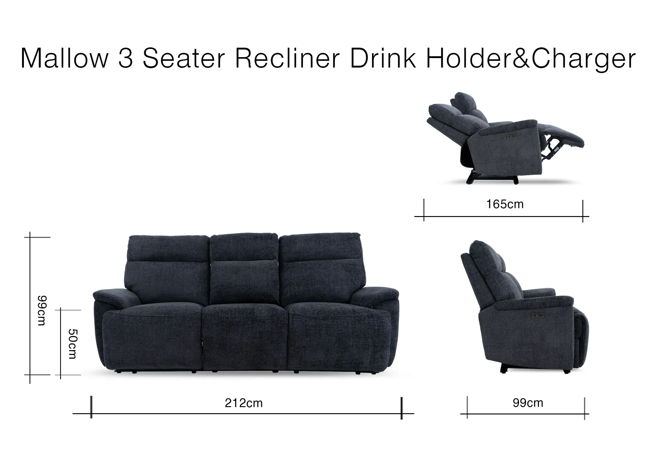 3 Seater Charcoal Fabric Power Reclining Sofa with Drinks Holder - Mallow