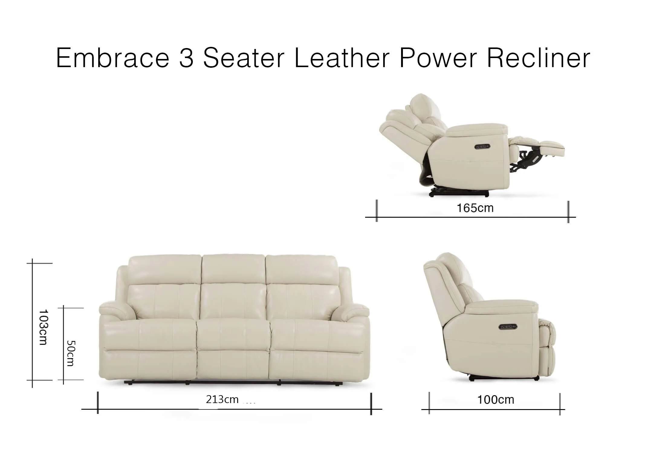 3 Seater Off White Leather Power Reclining Sofa - Embrace