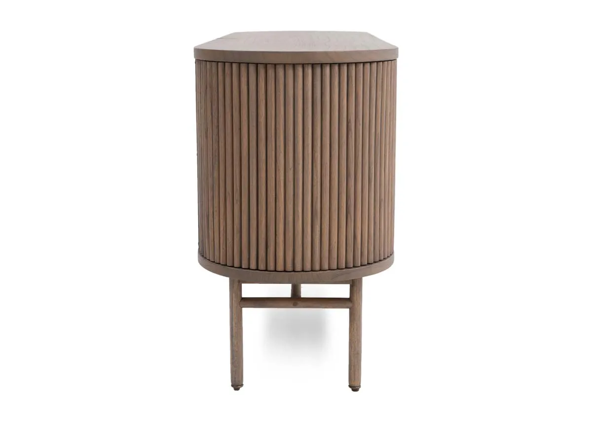 Boasting a vintage ash color the Pier sideboard has a slatted finish, pleasing curves, and a handy side door for your liquor or valuables.