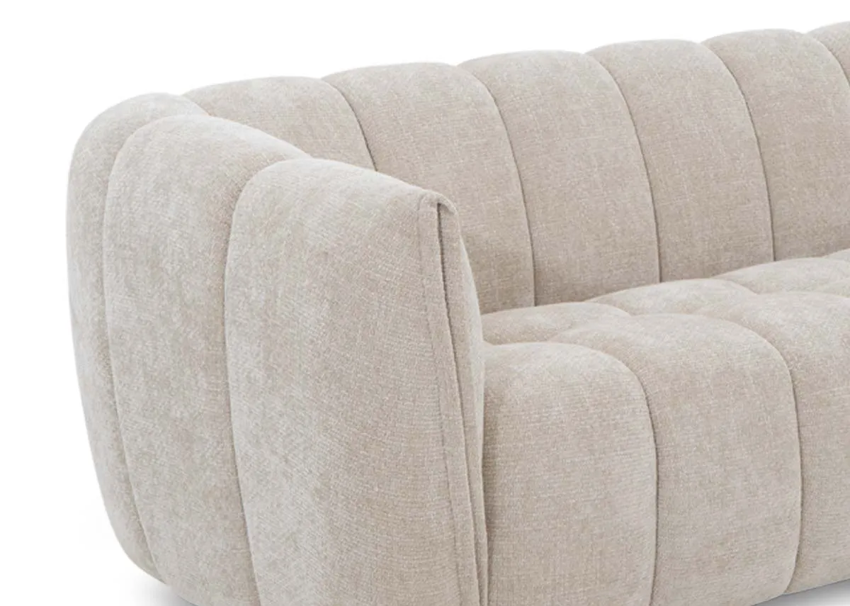 A muted ivory fabric 4 seater sofa with gorgeous curving lines and densely padded seating upholstered in a neutral fabric ideal for a modern home.