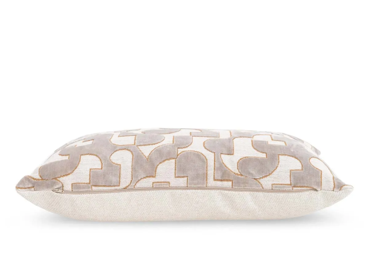 A luxury feather filled Natural cushion with a plain white and a geometric raised pattern in cream versatile for your living or bedroom space.