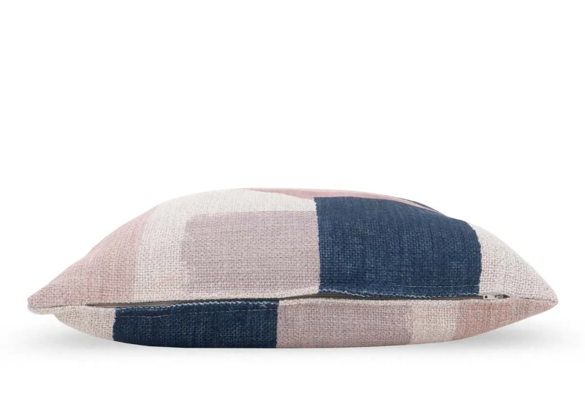 Add a touch of contemporary elegance to your home with the Geo Block cushion, featuring a striking geometric design in soothing natural beige and deep navy tones.