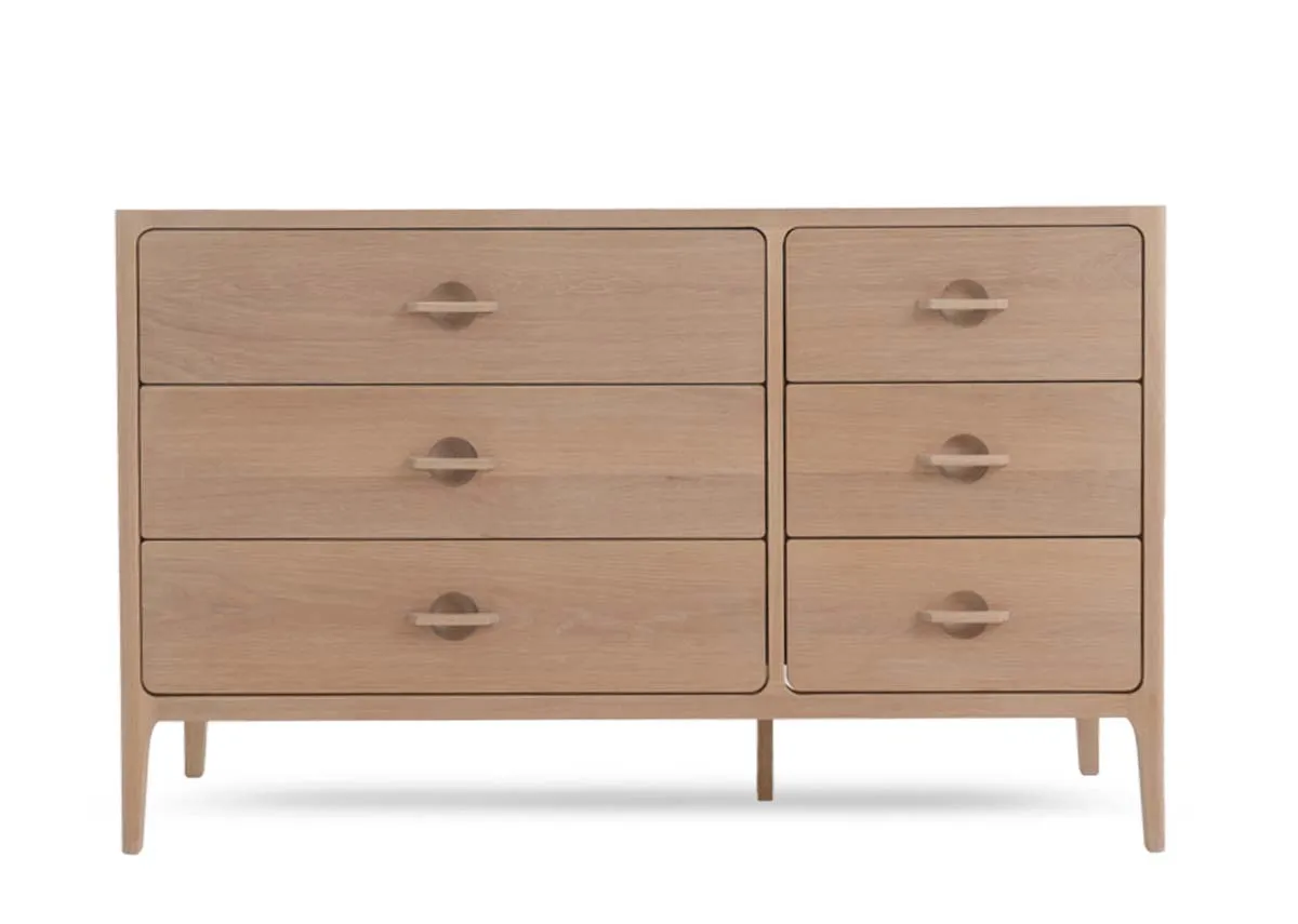 Discover timeless style and expansive storage with the Jay 6 Drawer White Oak Dresser, a beautiful addition designed to enhance any bedroom.