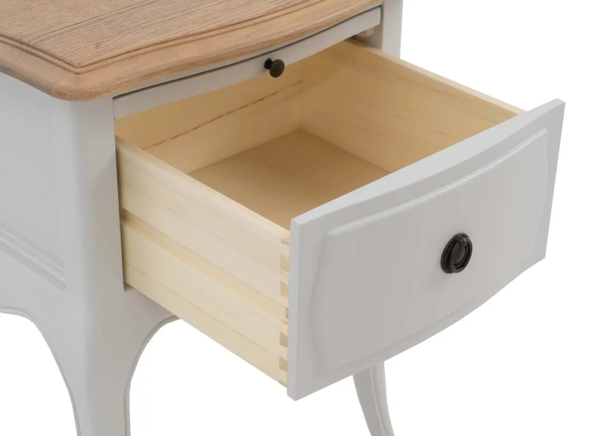 Infuse your bedroom with timeless charm and practical elegance with the Amelie 1 Drawer Locker, boasting exquisite classical French joinery and a refined white and limewashed oak finish.