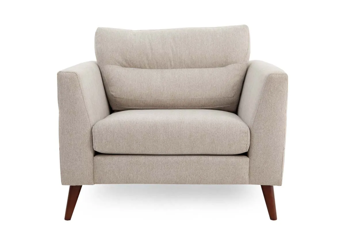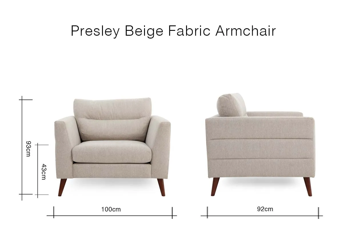 The Presley beige fabric armchair will deliver comfort with a supportive warrantied frame and boasts a high-density foam filling for consistency and gentle support.