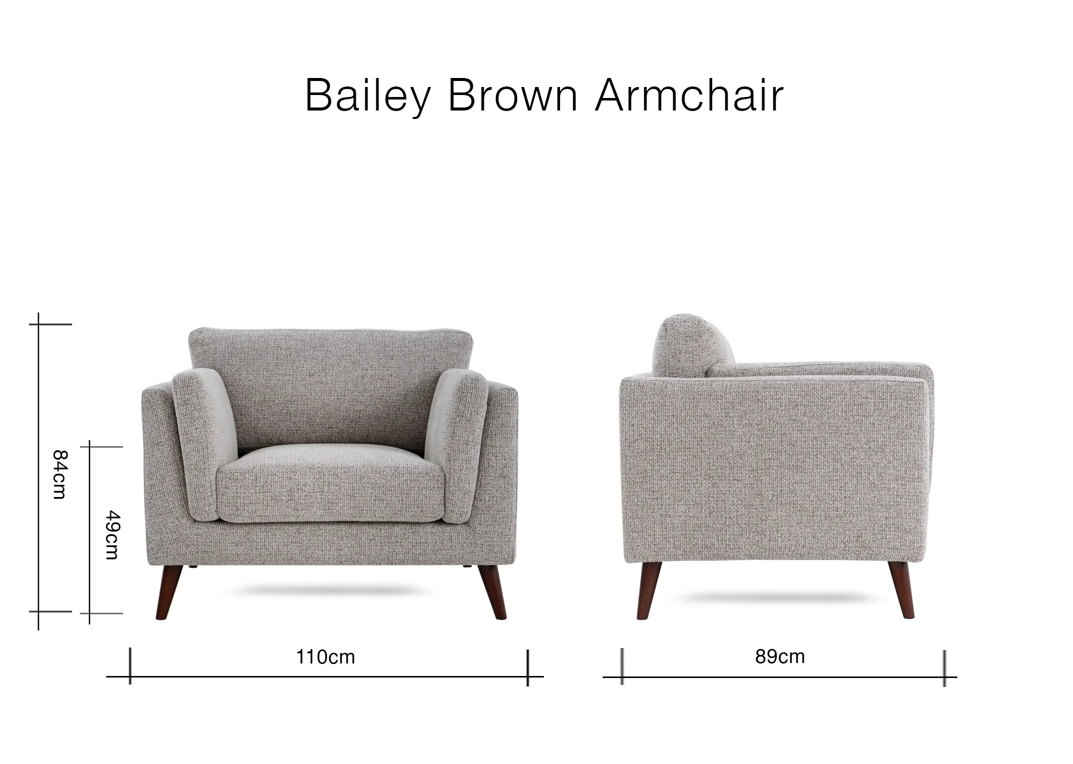 Understated but a stylish and comfy choice of armchair the Bailey has a beautiful brown accent upholstery and walnut feet.