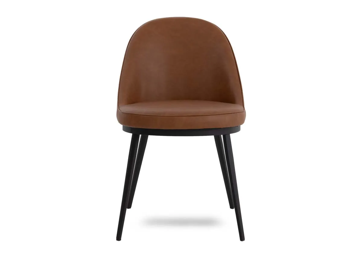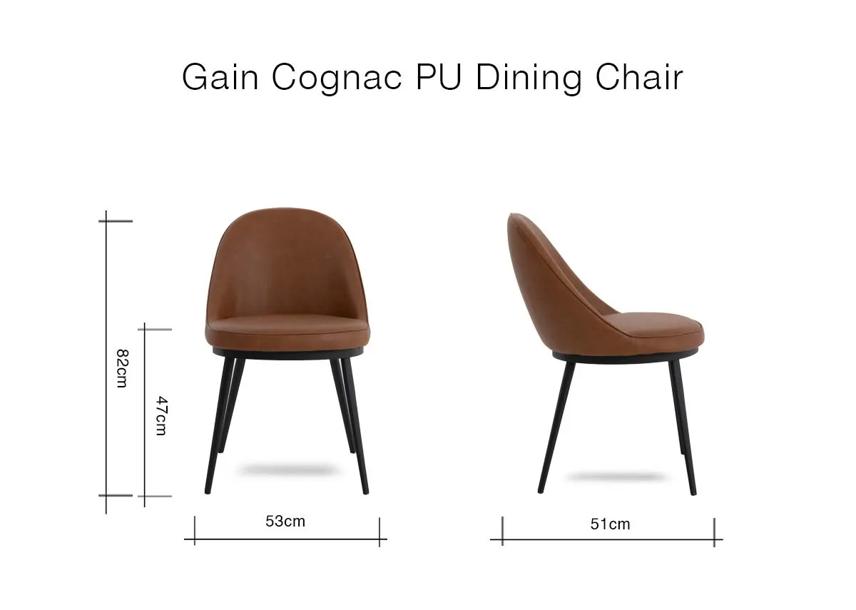 A tan faux leather padded dining chair with black metal legs makes the Gain a wise choice.
