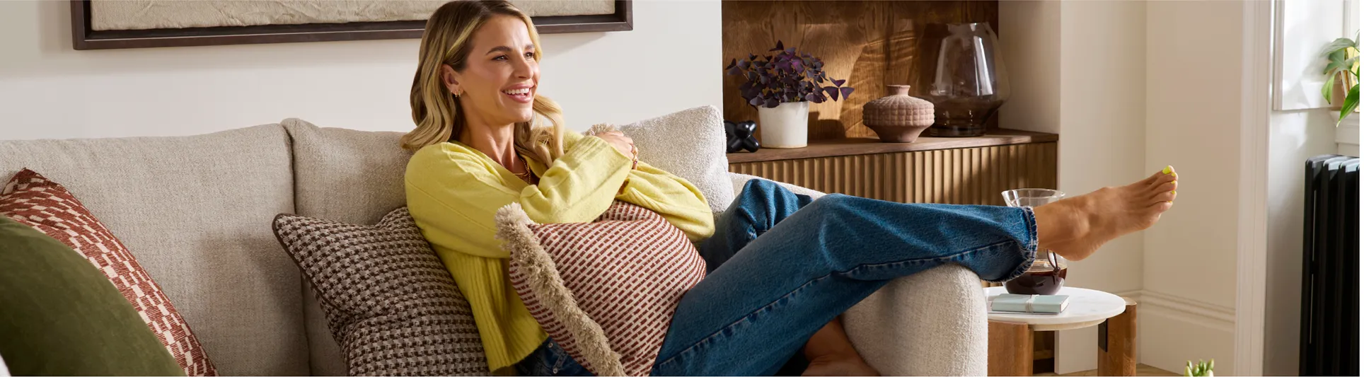 Elevate your living space with the Carnaby Sofa Range, where ultimate comfort meets contemporary design. Centred around the spacious Carnaby Corner Sofa featuring a softly curved frame and Vogue-curated scatter cushions, this collection is your new hosting hero and supreme lounging spot. The Carnaby Pebble Footstool perfectly complements the sofa's curves, providing a soft, stylish resting place for tired feet. Complete your sanctuary with the cozy Piccadilly Swivel Chair. Designed with a scooping back and plush cushions, it creates a unique cocoon-like feel—making it the ideal spot for reading or relaxing. Discover the Carnaby Range and bring luxurious comfort and style into your home.