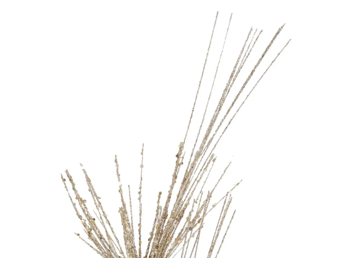 Bring a touch of holiday magic to your home with this exquisite champagne glittered stem pick.