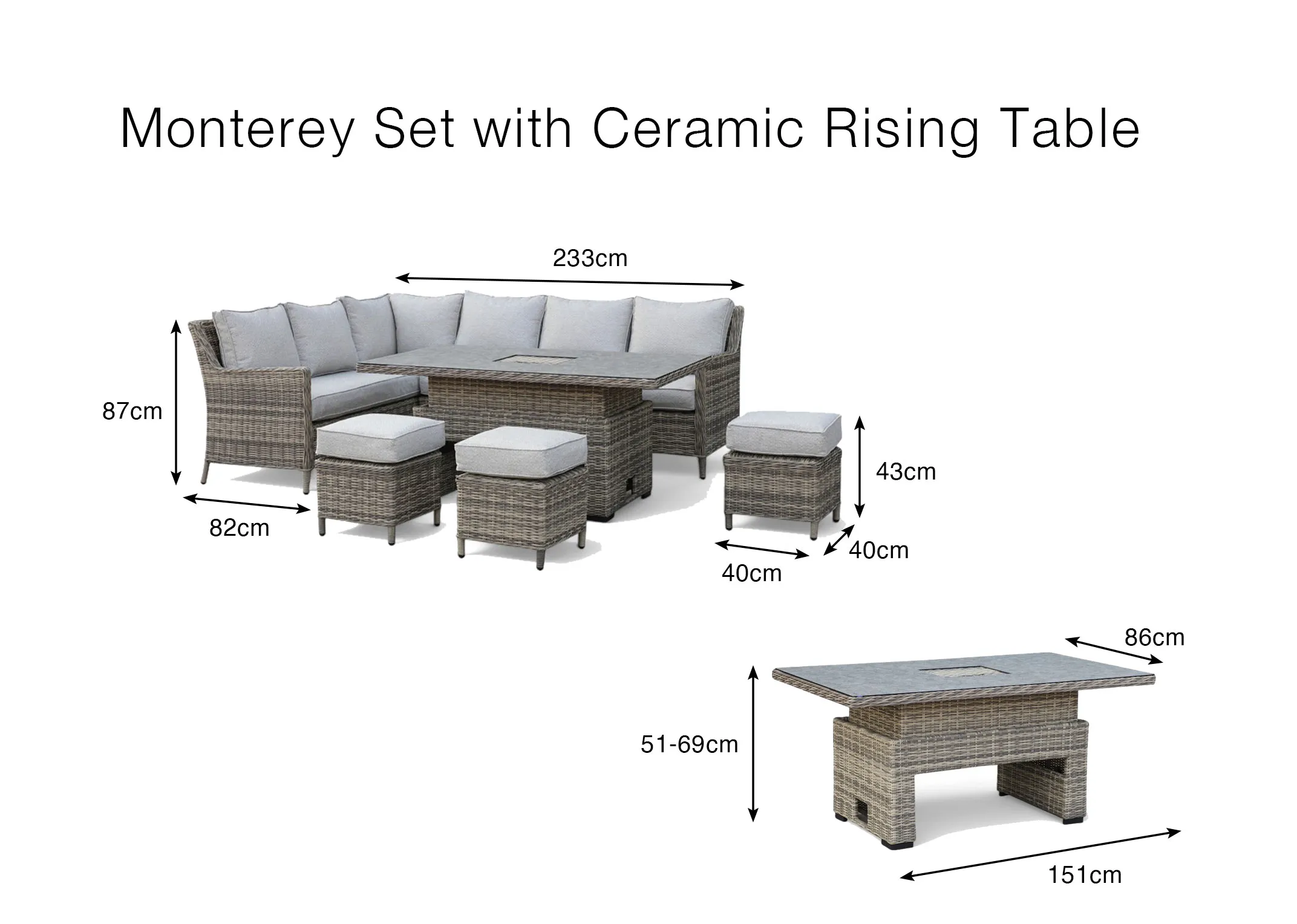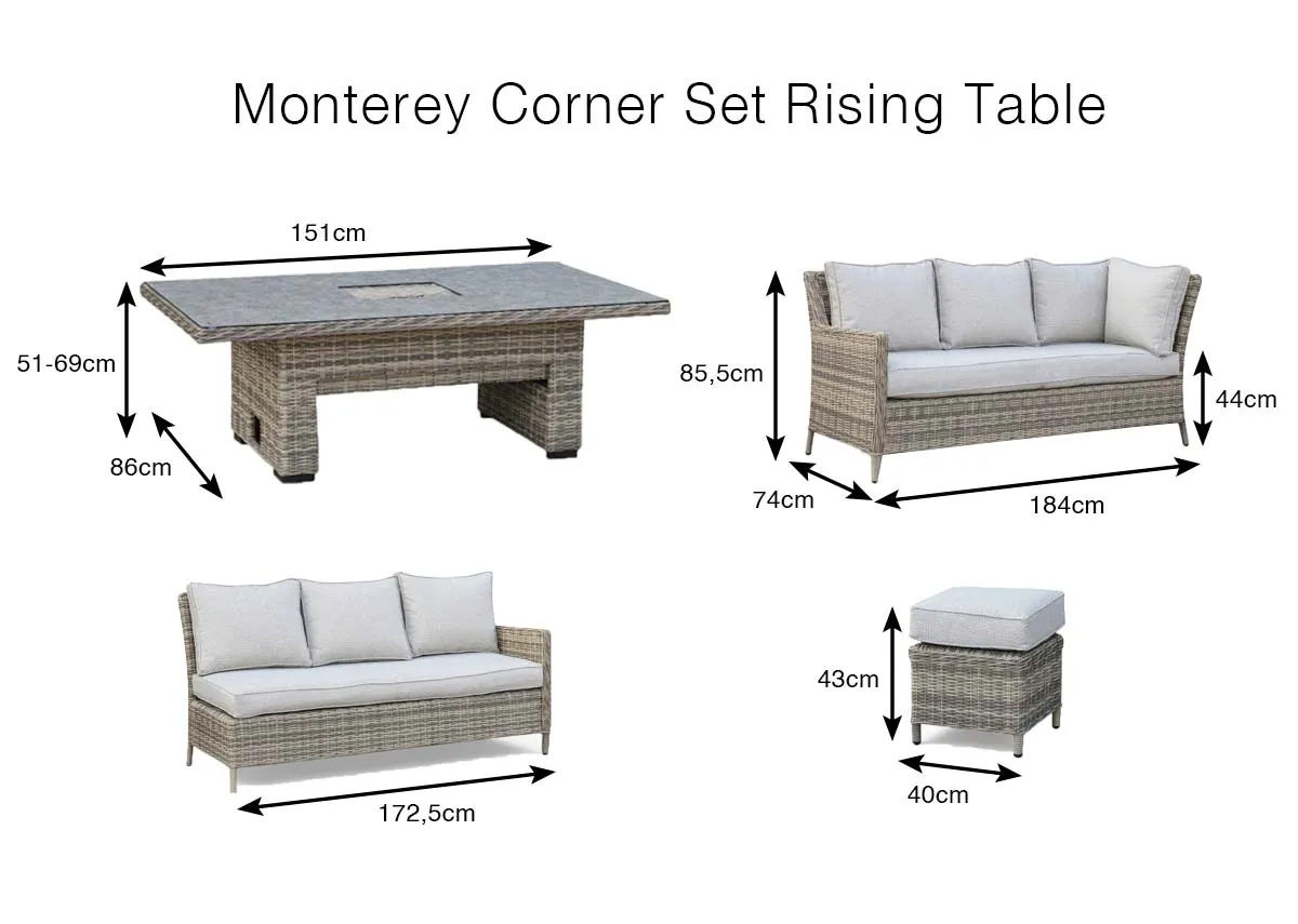 Corner Garden Set with Rising Table & 3 Ottomans - Monterey