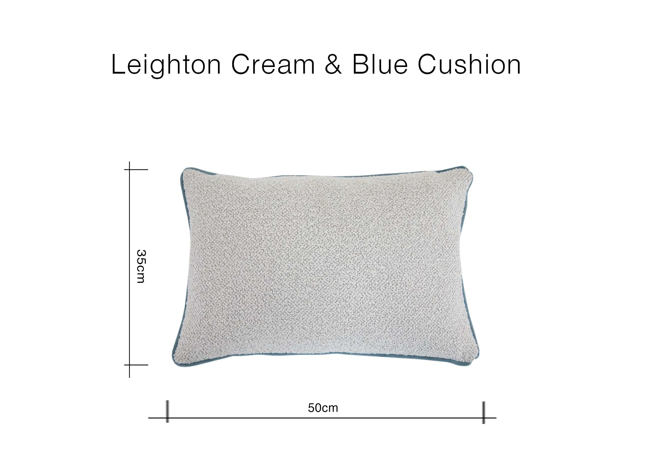 The incredible Leighton Bolster Cushion will enhance your comfort and interior with its boucle fabric and blue piping detail.