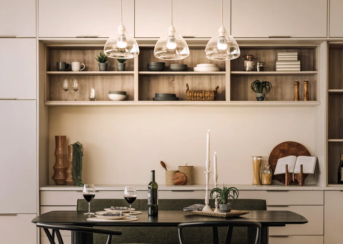 Hang the Bisho pendant light over a kitchen island or dining table for instant lift, with 3 glass shades this light is sure to be a feature piece.