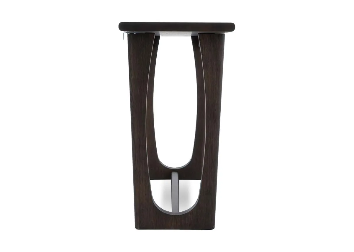 Elevate your entryway with the striking silhouette and rich finish of the Flow Dark Brown Oak Console Table.