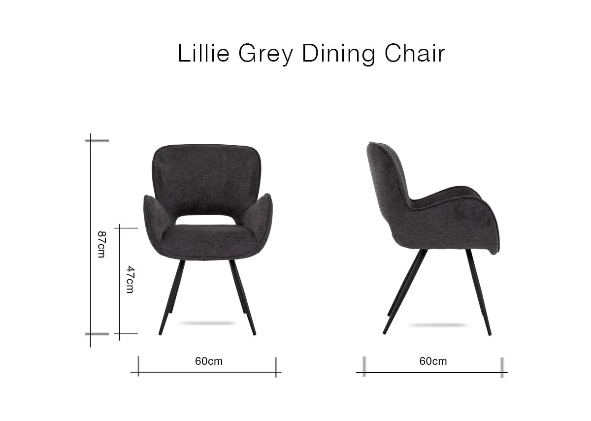 Comfortable, stylish and on-trend, the Lillie grey fabric dining chair is also available in green, light pink & light plum fabric.