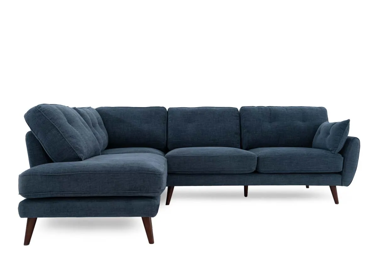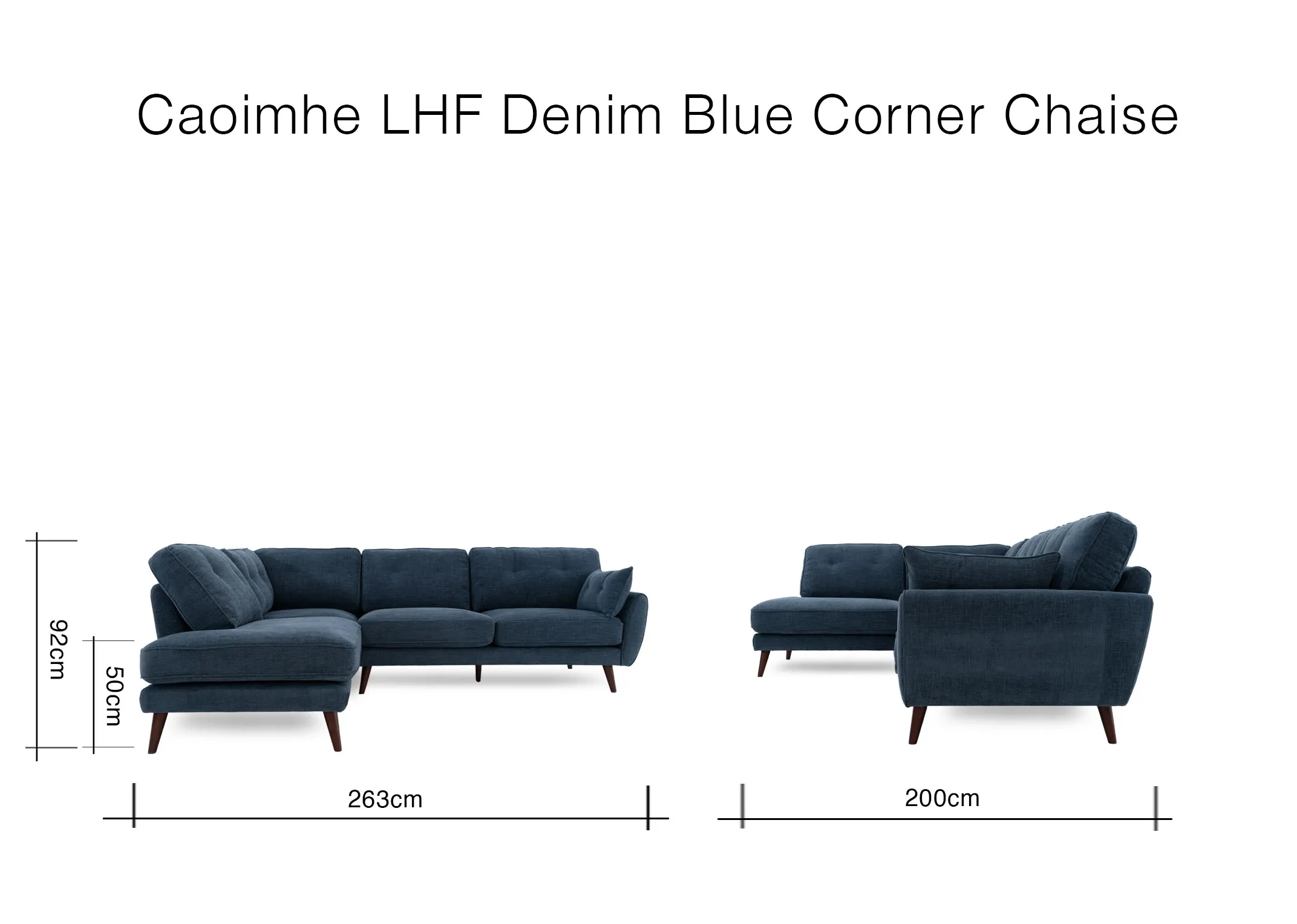 Denim Blue Fabric LHF Corner Chaise with Free Footstool - Caoimhe
