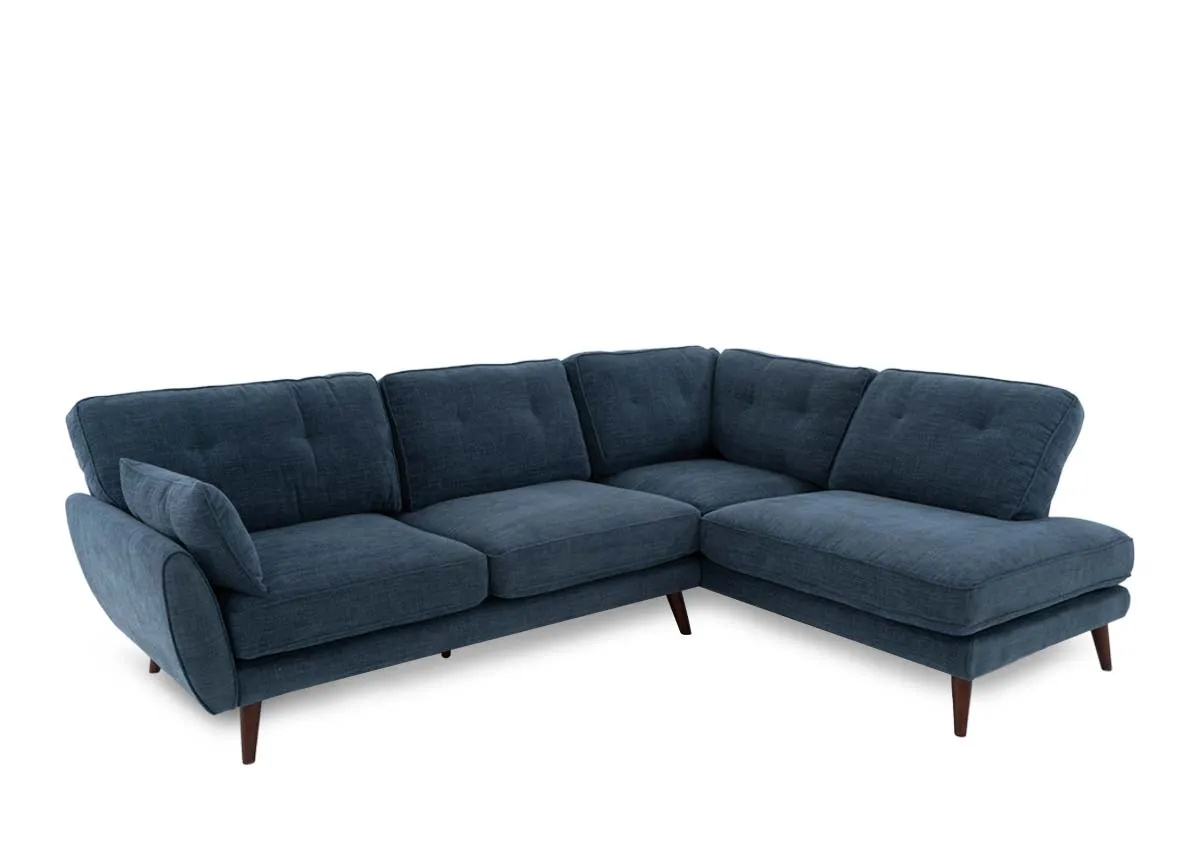 Denim Blue Fabric RHF Corner Chaise with Free Footstool - Caoimhe