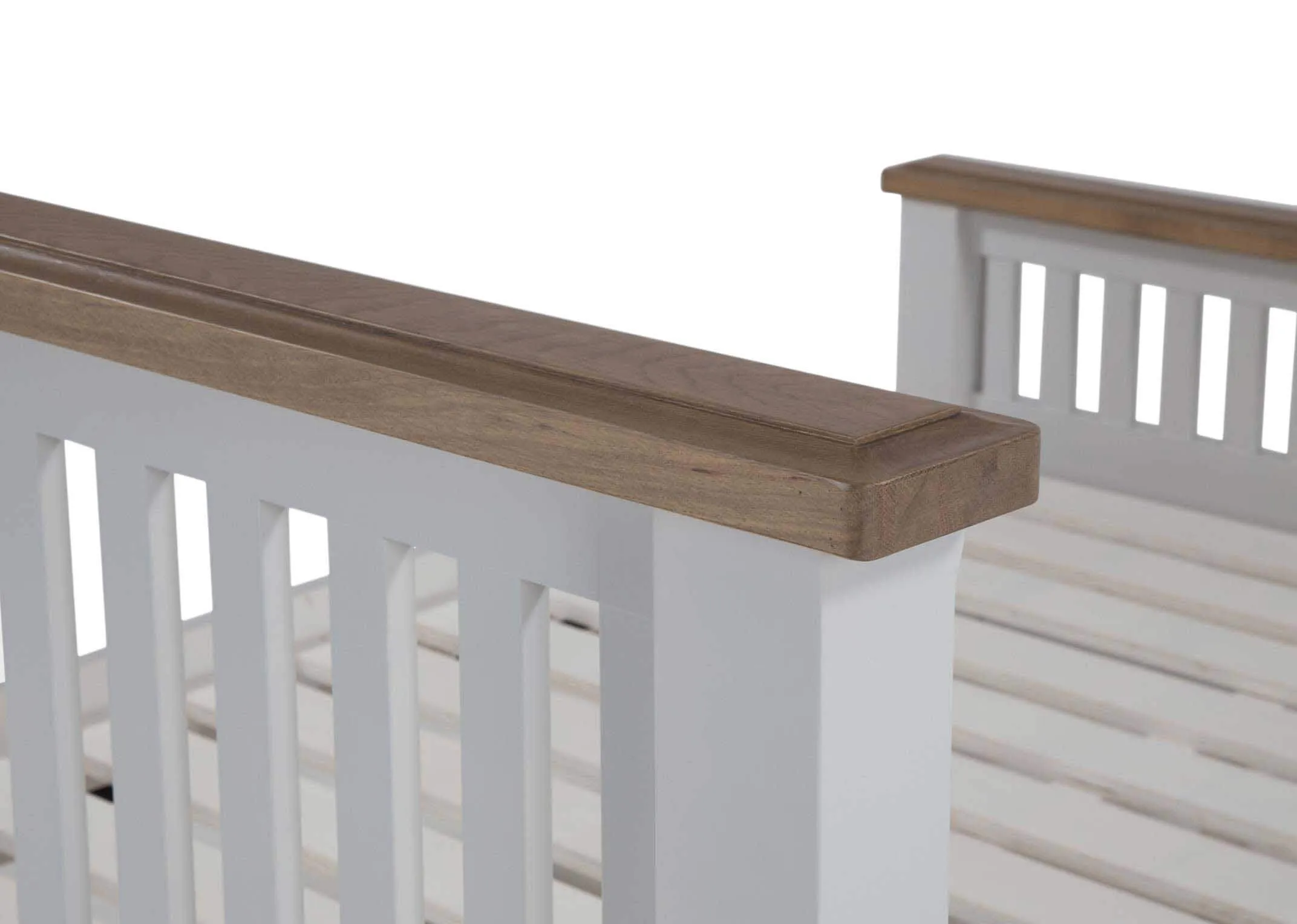 Crafted from pine & ply this 4ft 6 double bed frame features a stylish two-tone design with a grey-painted finish and a natural wood top