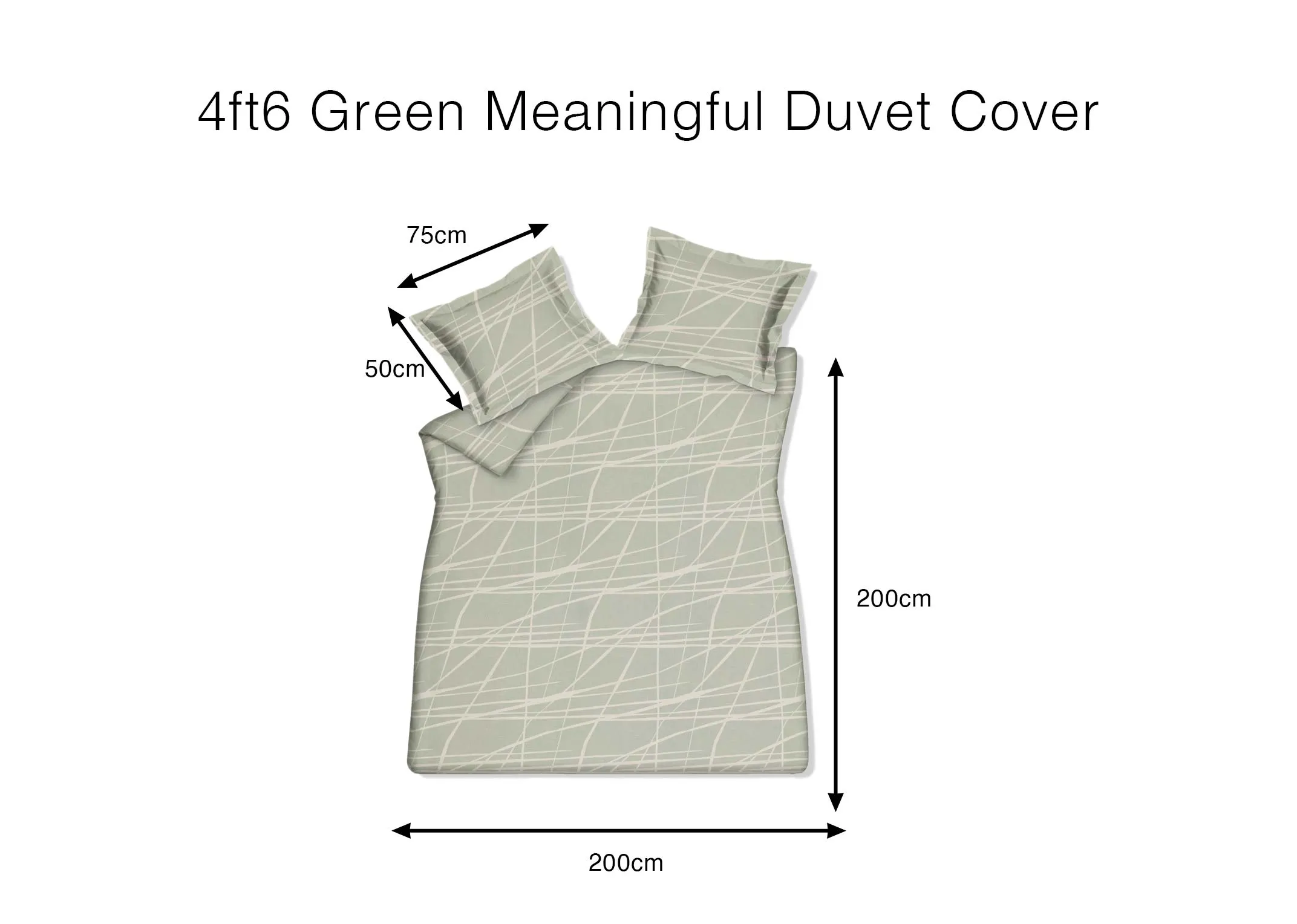Contemporary pattern meets versatile colour in the Meaningful Double (4ft6) Green Cotton Duvet Set.