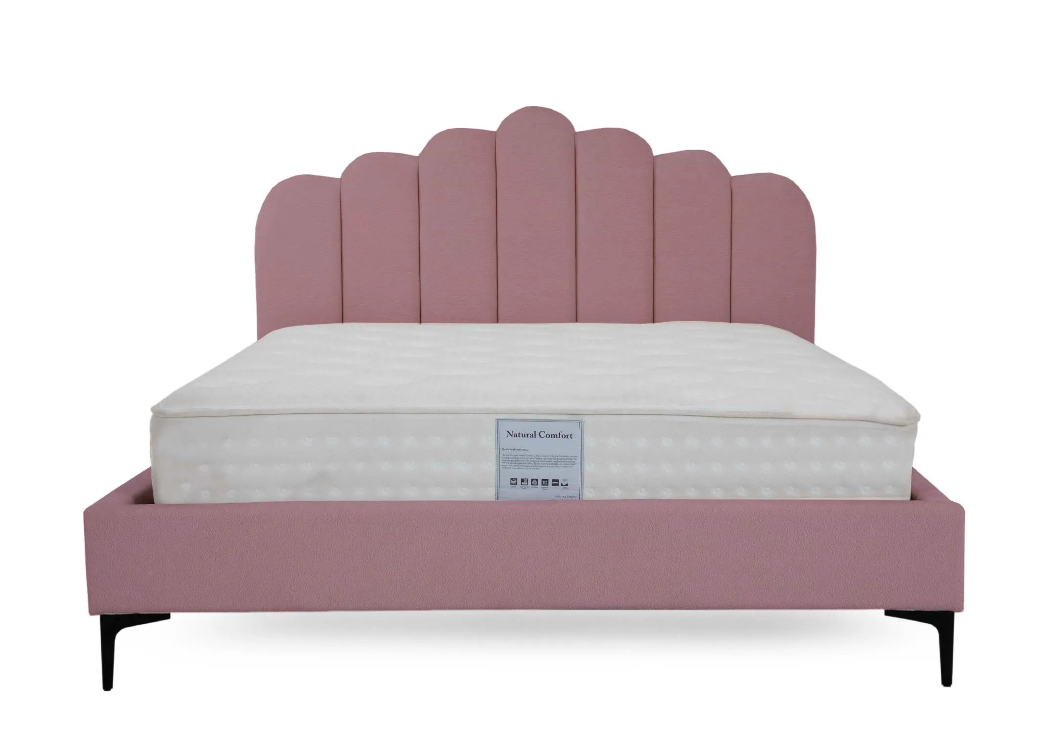 Pink isn't just a colour, it's an attitude! The Faye double 4ft 6 Bed Frame perfectly encapsulates this statement with its high-scalloped headboard, blush pink shade, and soft-to-touch fabric.