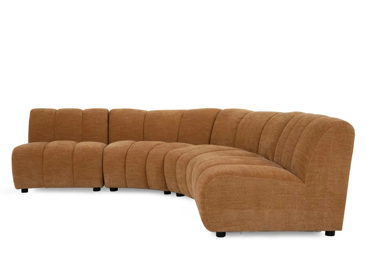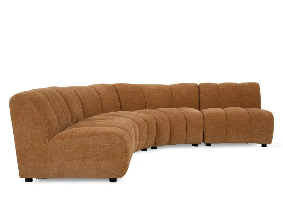 The Tokyo curved corner sofa boasts a chic gold velvet fabric, pleasing curved abd superior levels of comfort thanks to the foam fileld seat cushions.