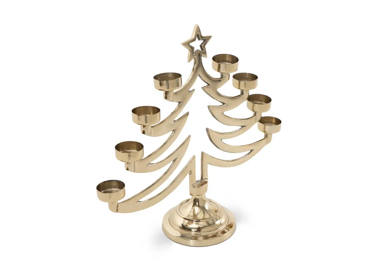 Gold Xmas Tree with 8 T-Lights - Christmas Candle Holder
