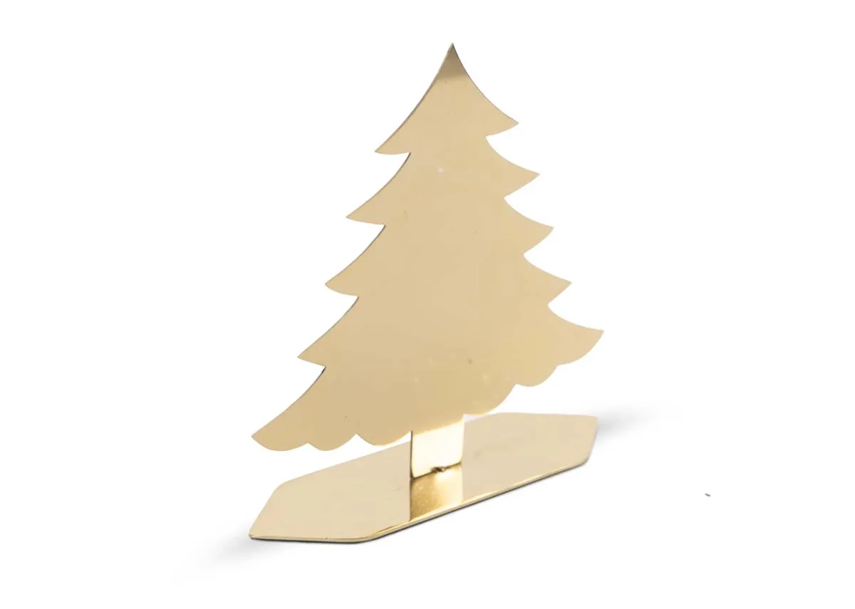 A luxurious gold-finished 2D Christmas tree, connected to a standing plate.