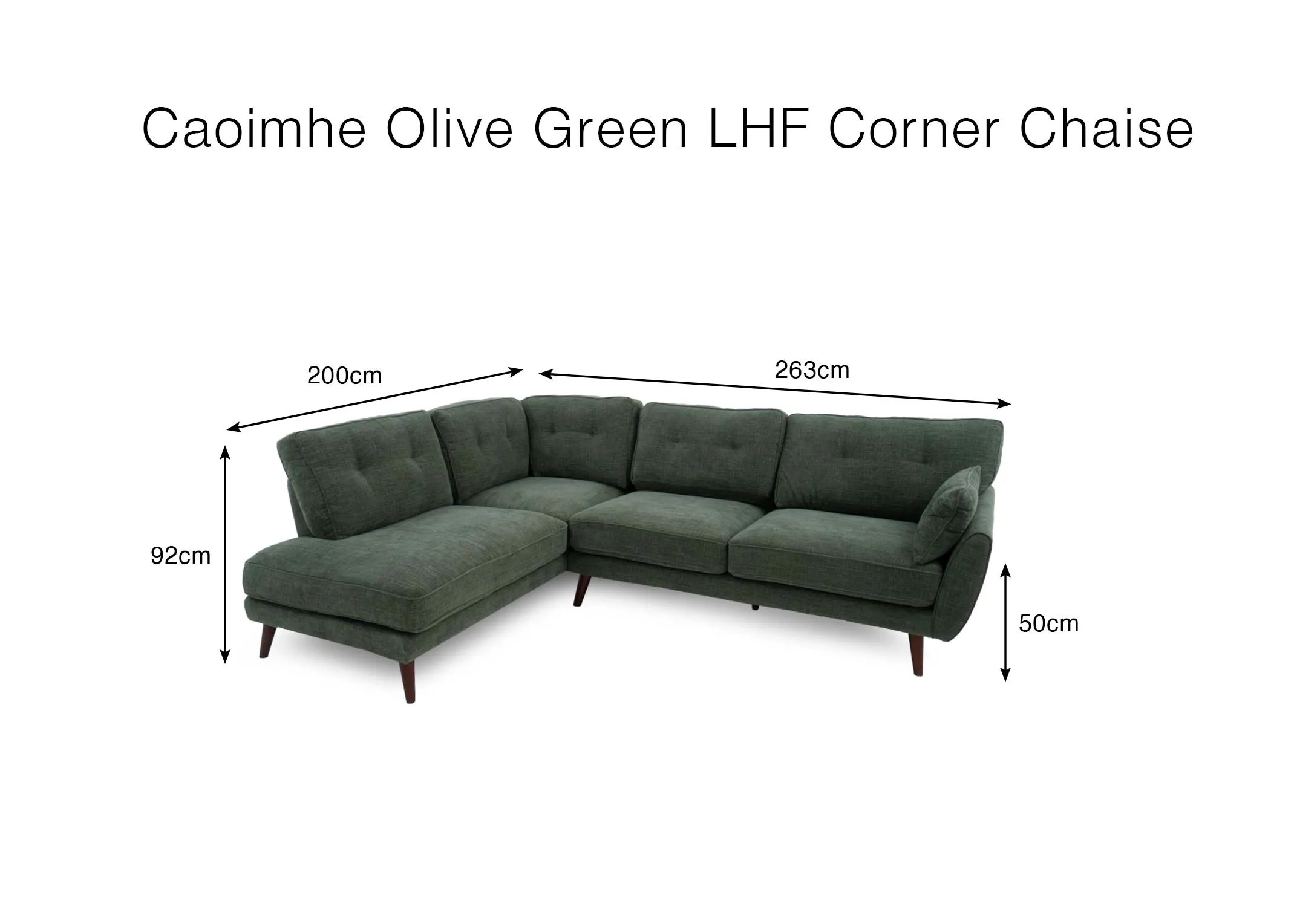 Indulge in luxurious comfort and contemporary style with the Caoimhe Green Fabric LHF Corner Chaise, thoughtfully designed to be the heart of your home.