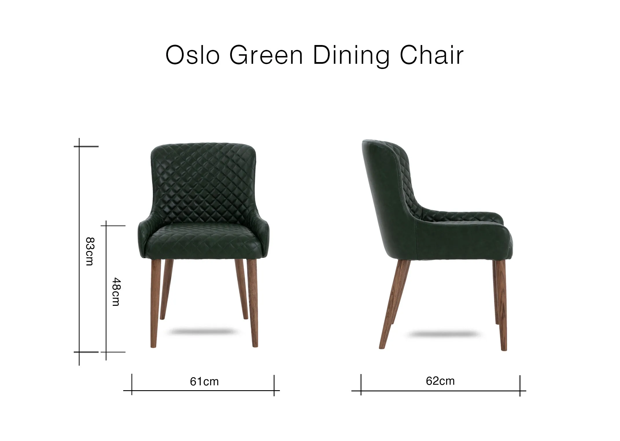 Opt for incredibly comfortable seating at the dining table with an Oslo chair in a stand out green faux leather upholstery and a quilted design