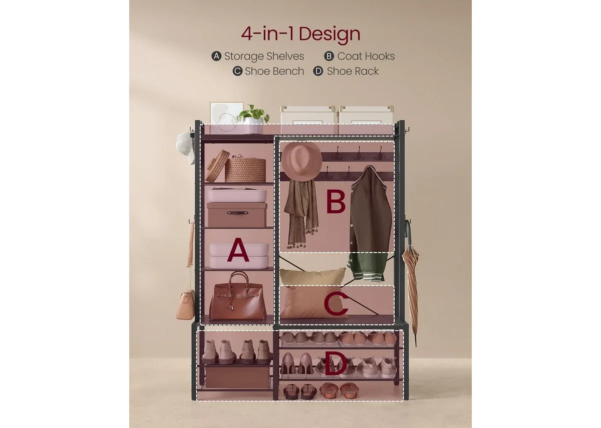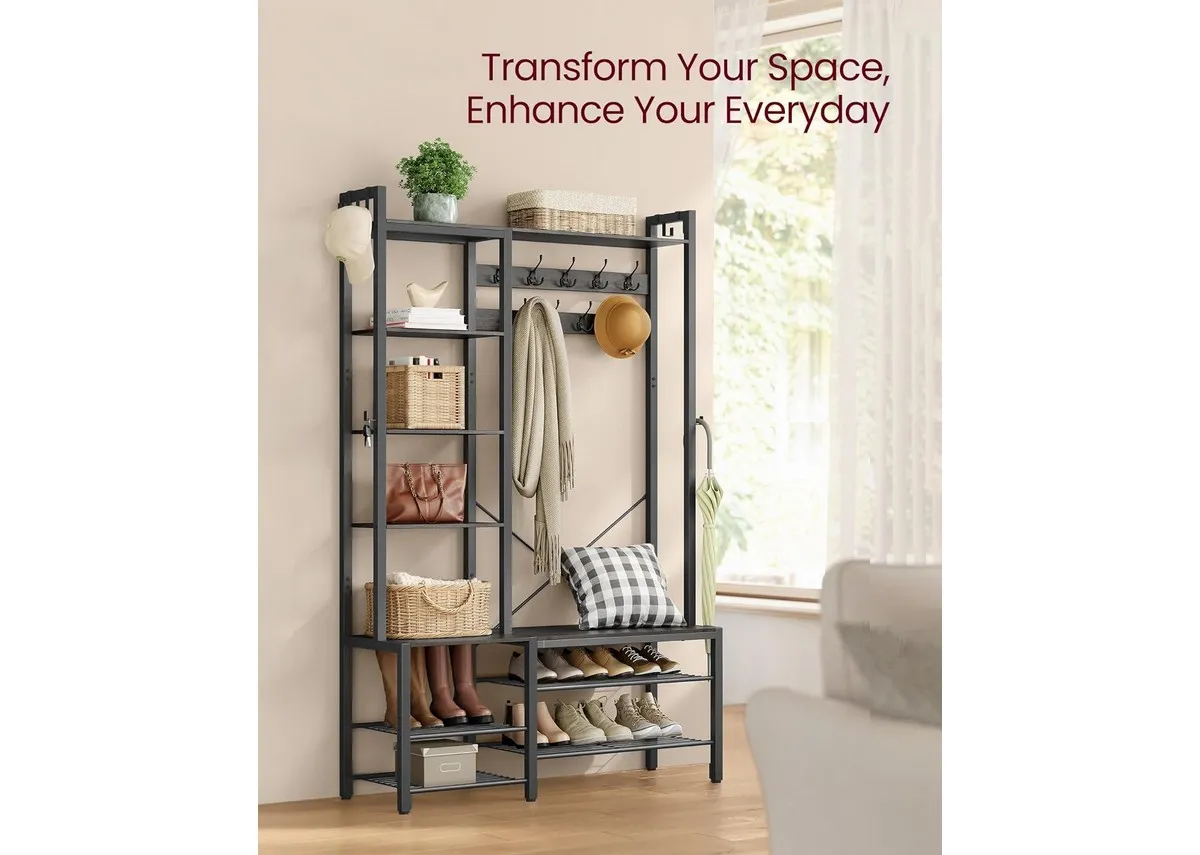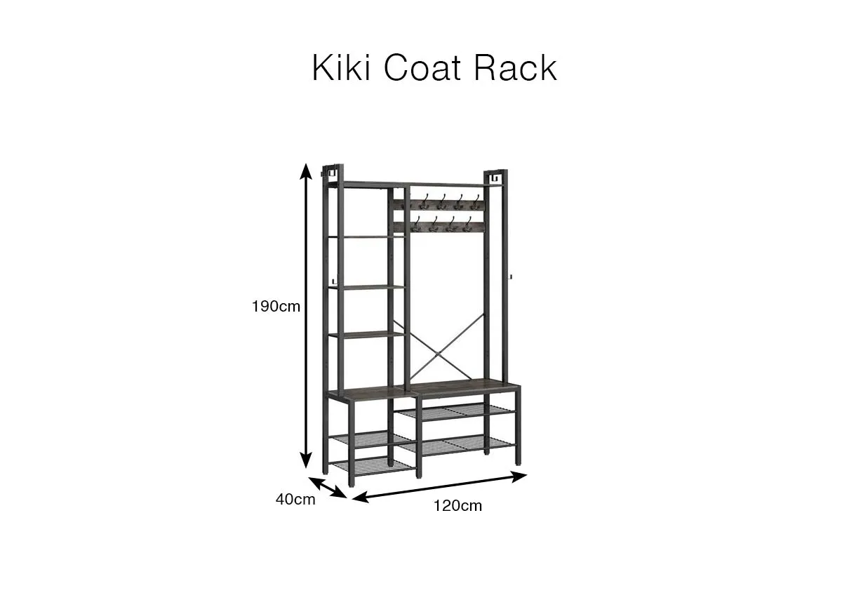 The Kiki Coat stand and show bench is an industrial style piece that provides a handy place to hang your coat & store your shoes.