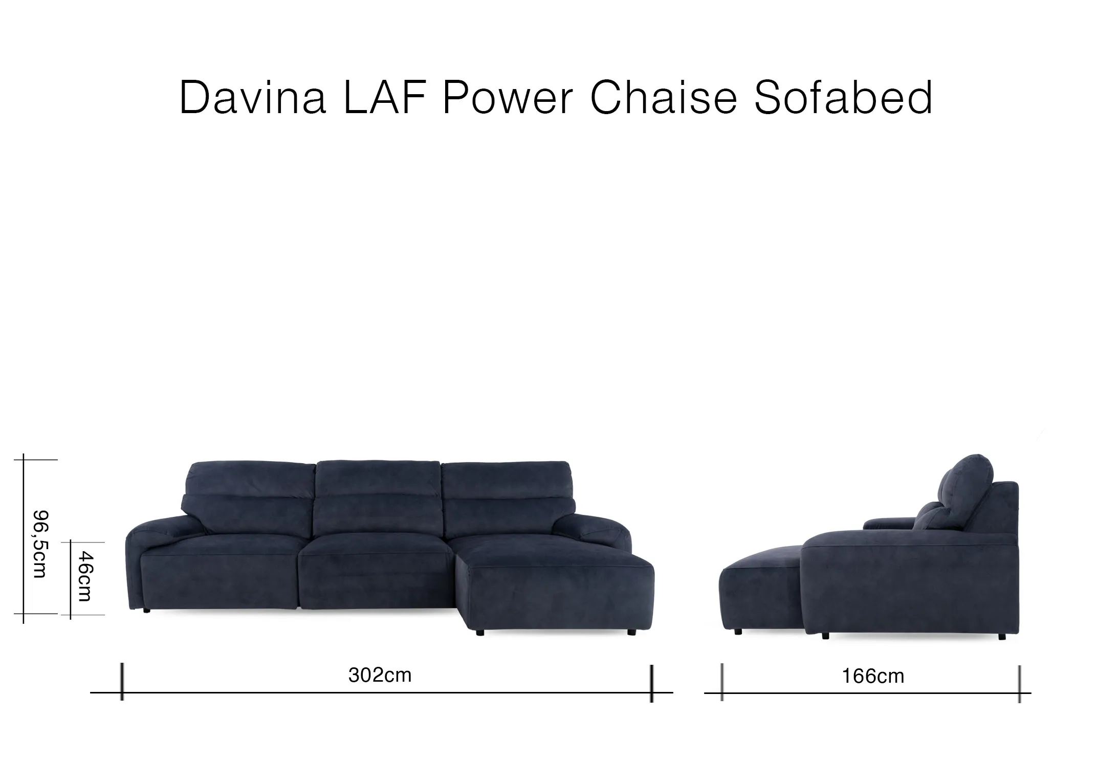 Grey Fabric LAF Power Chaise Sofa Bed - Davina
