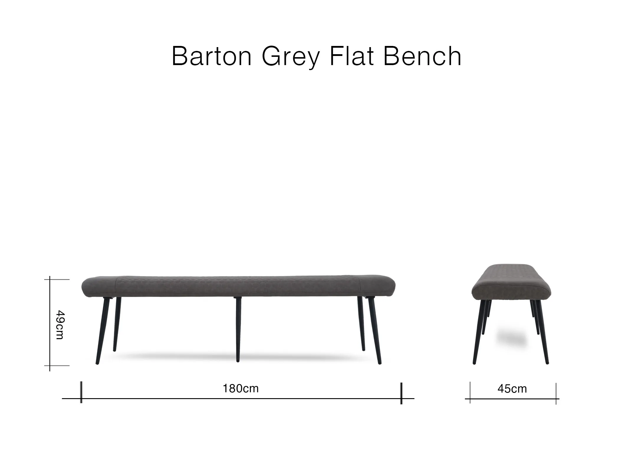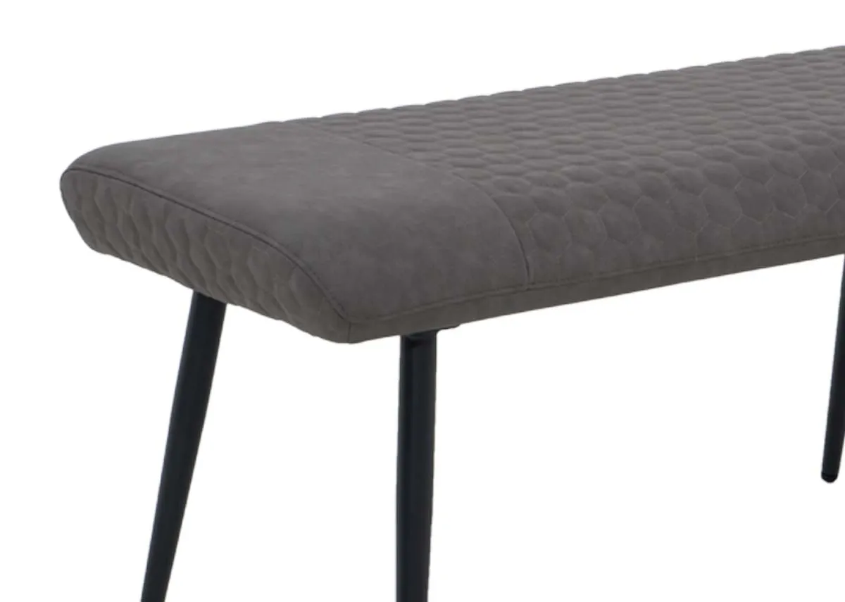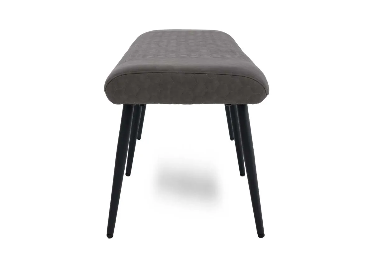 Industrial in design, the Barton flat dining bench boasts a grey faux leather padded seat, with a honeycomb pattern & black metal frame
