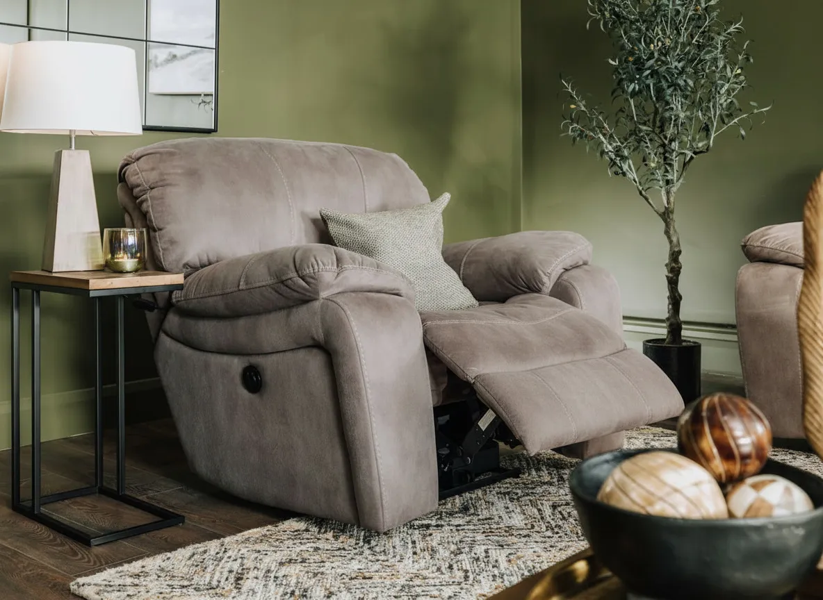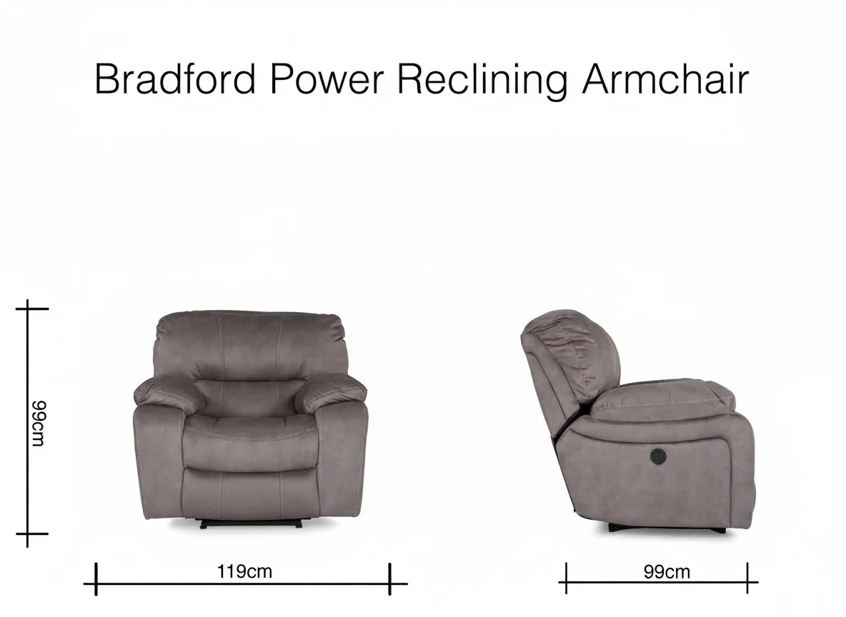 Grey Suede Fabric Power Reclining Armchair - Bradford