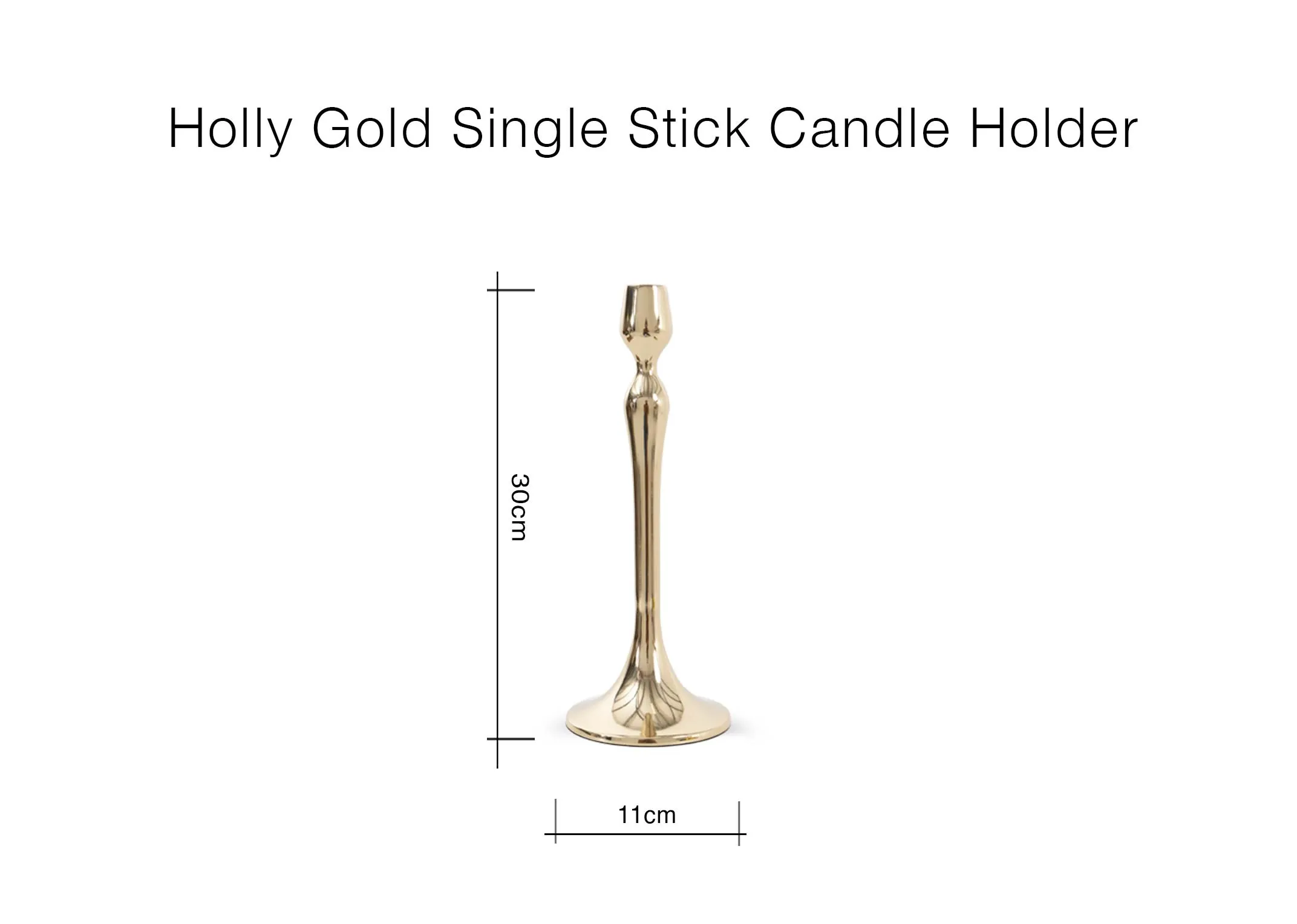 Enhance your seasonal candle display with the Holly Small Single Stick Gold Holder.