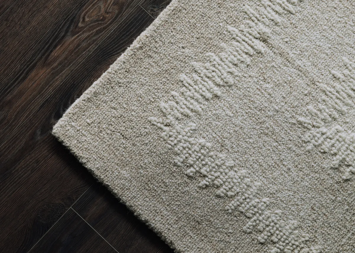 A neutral choice, the Sovata ivory sand rug boasts a simple textured pattern with an ivory border, adding depth to your space.