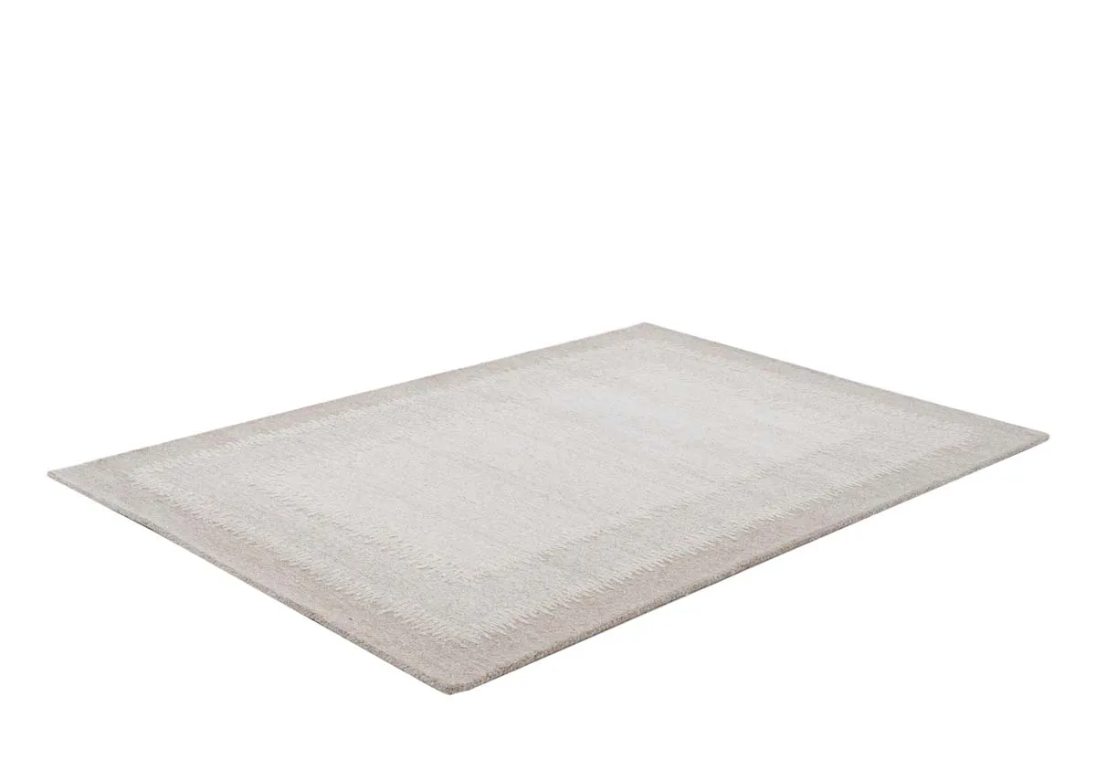 A neutral choice, the Sovata ivory sand rug boasts a simple textured pattern with an ivory border, adding depth to your space.