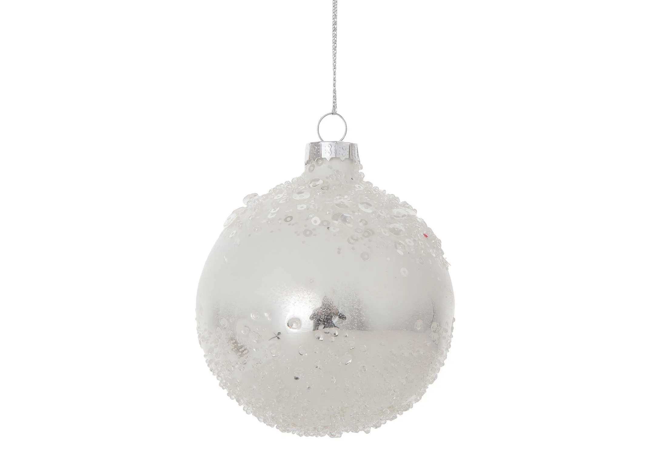 Set Of 4 White Silver Baubles - Joy to the World