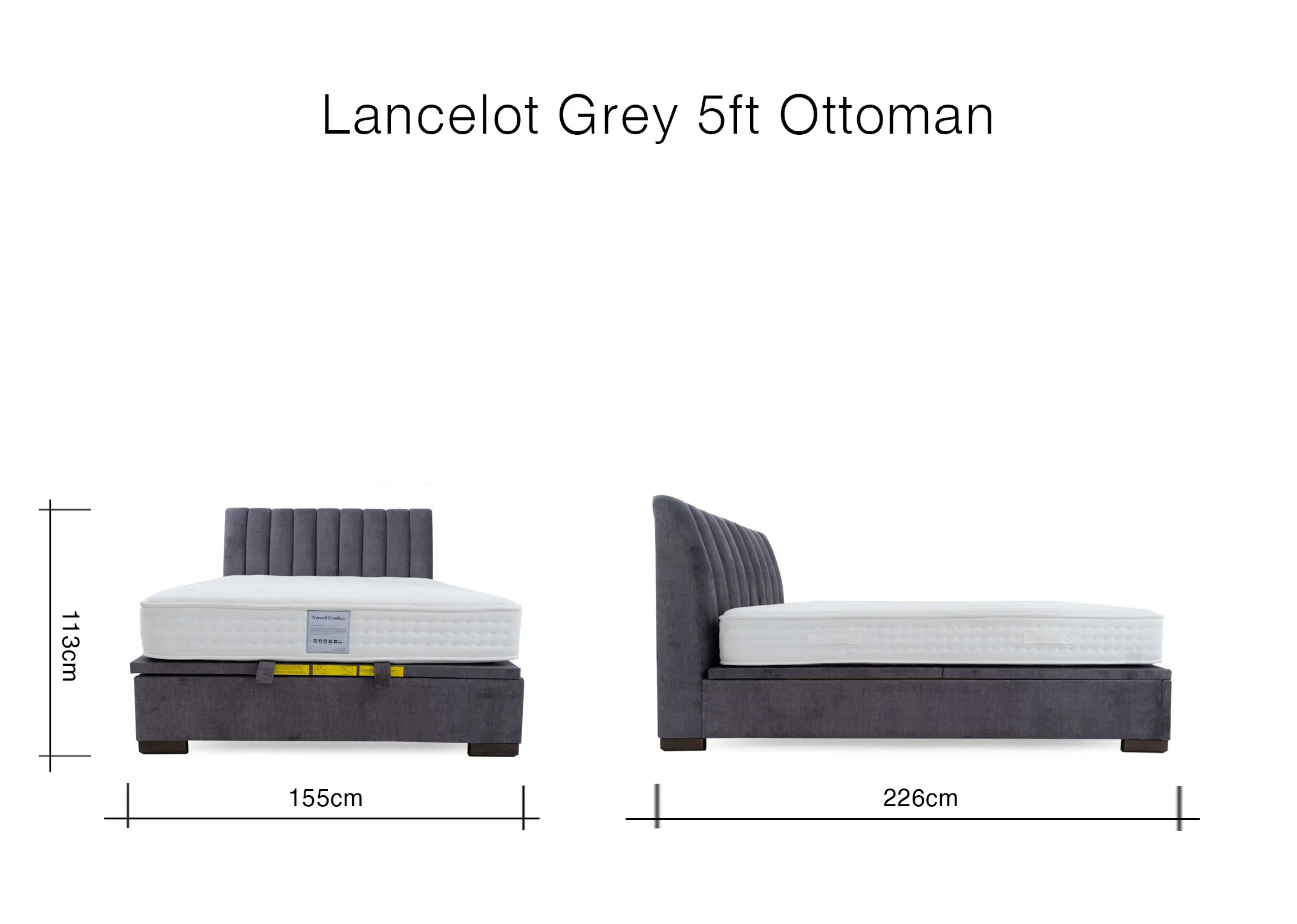 King Size (5ft) Grey Fabric Ottoman Bed - Lancelot