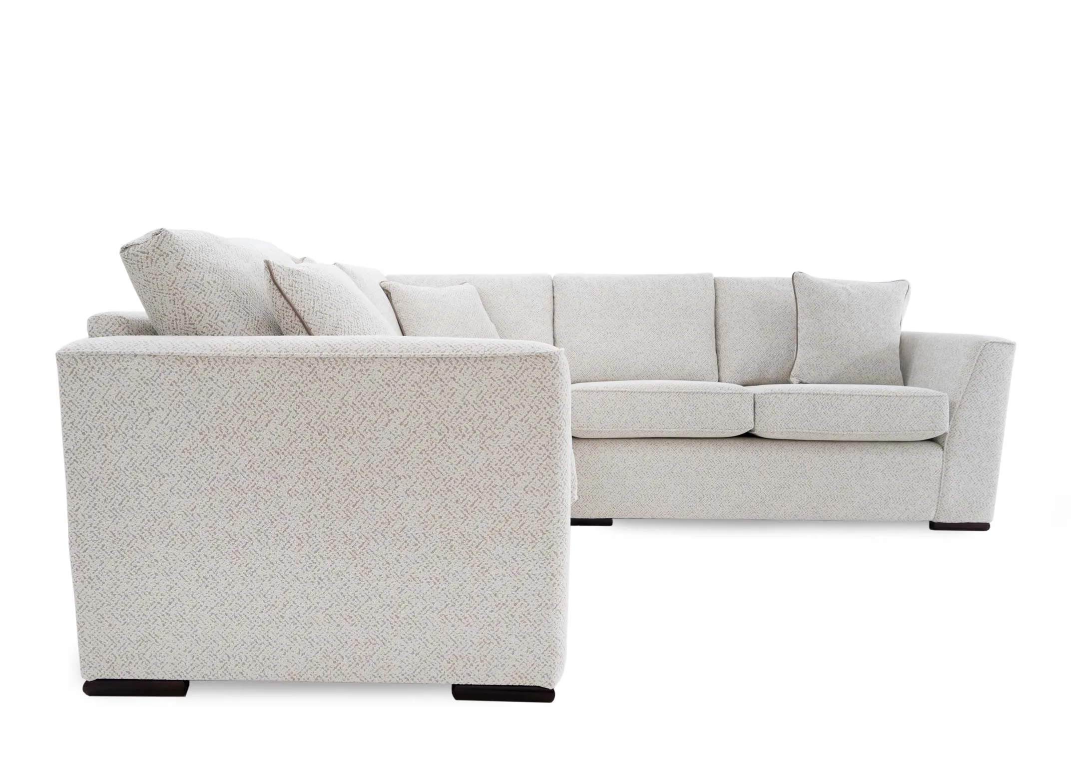 An Irish made to order fabric corner sofa with foam & fibre cushions and 3 scatter cushions.