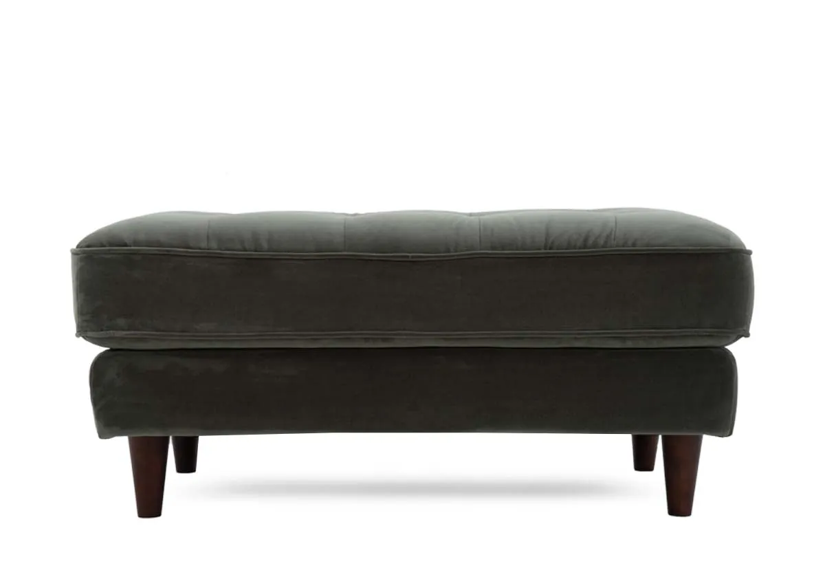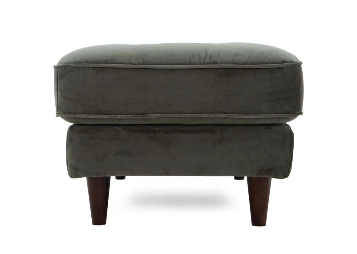 Sultry in dark green velvet, the Genoa footstool with walnut wood feet is stunning as an extra seat or for resting your feet on.