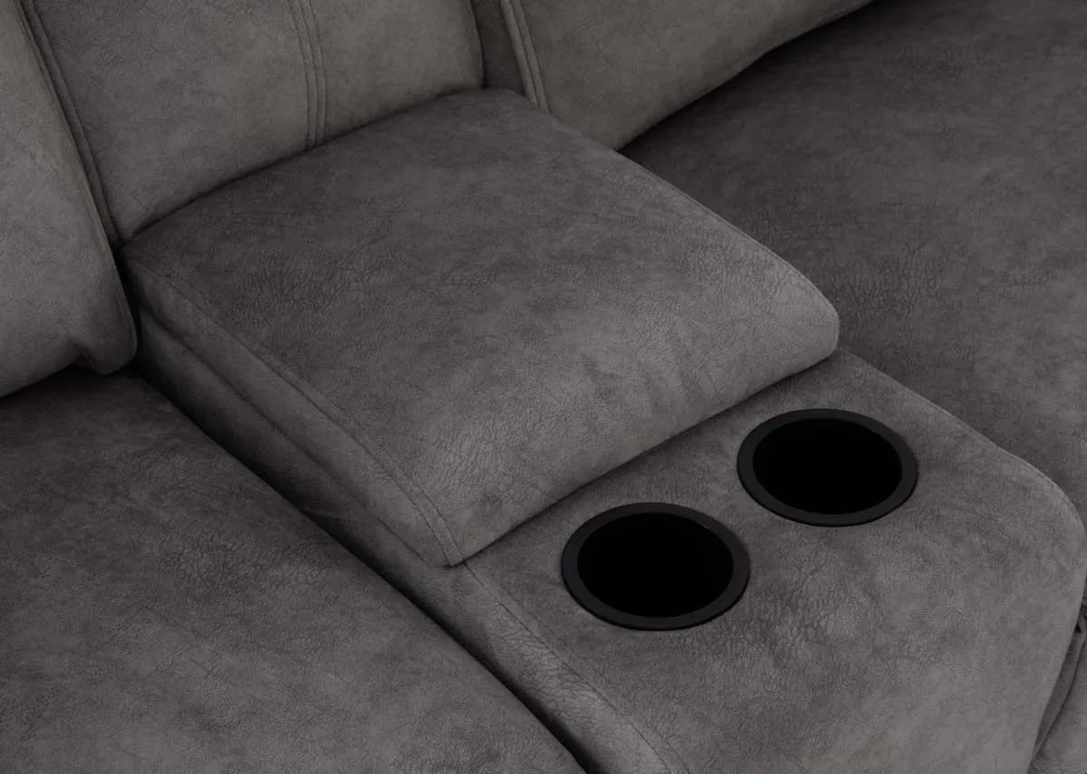 The Oscar Large Grey Fabric Reclining Corner Sofa ensures you are seated in comfort courtesy of the 2 reclining seats at either end, the foam-filled seat cushions, fibre-filled back cushions and seats supported by 100% steel spring suspension & a drinks holder with usb charging port.