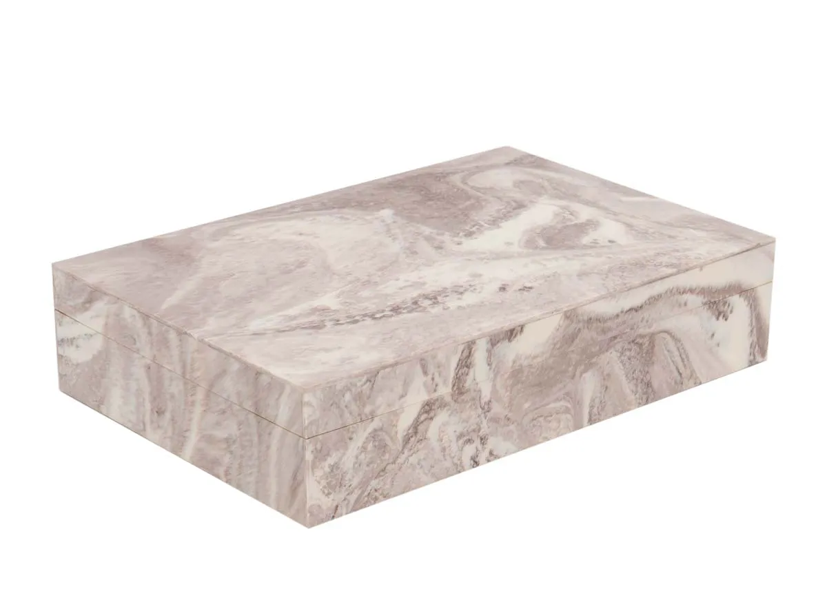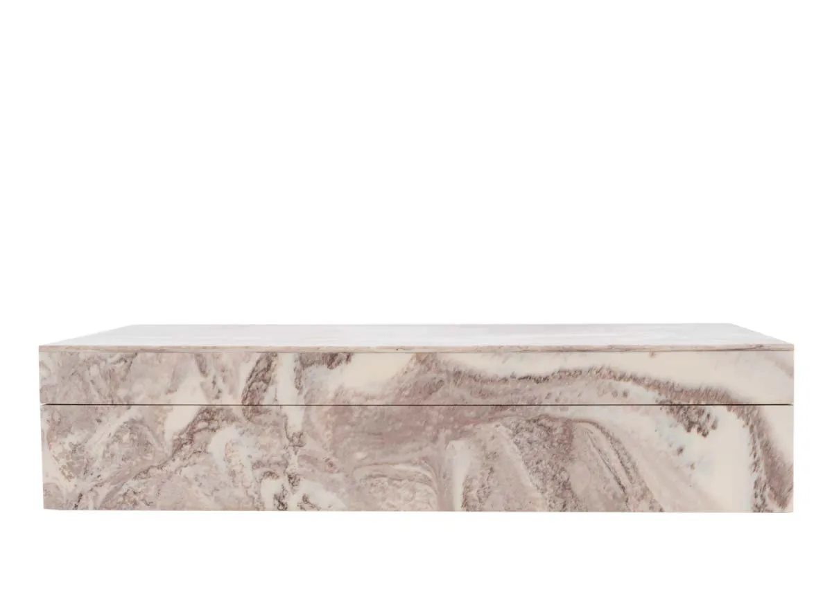 The Scarlet Large Deco Box offers a stylish storage solution in a sophisticated brown and cream marble-look finish.