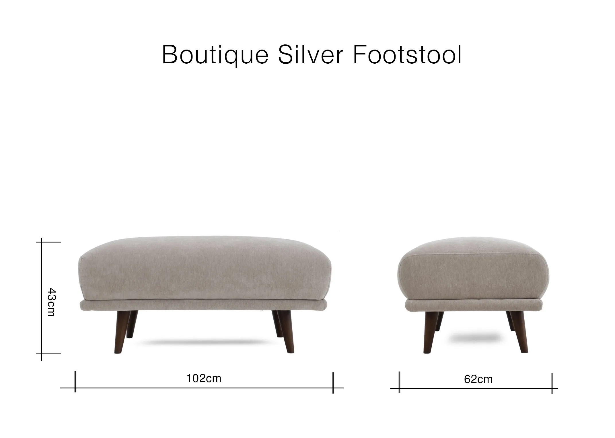 Large Silver Fabric Footstool - Boutique